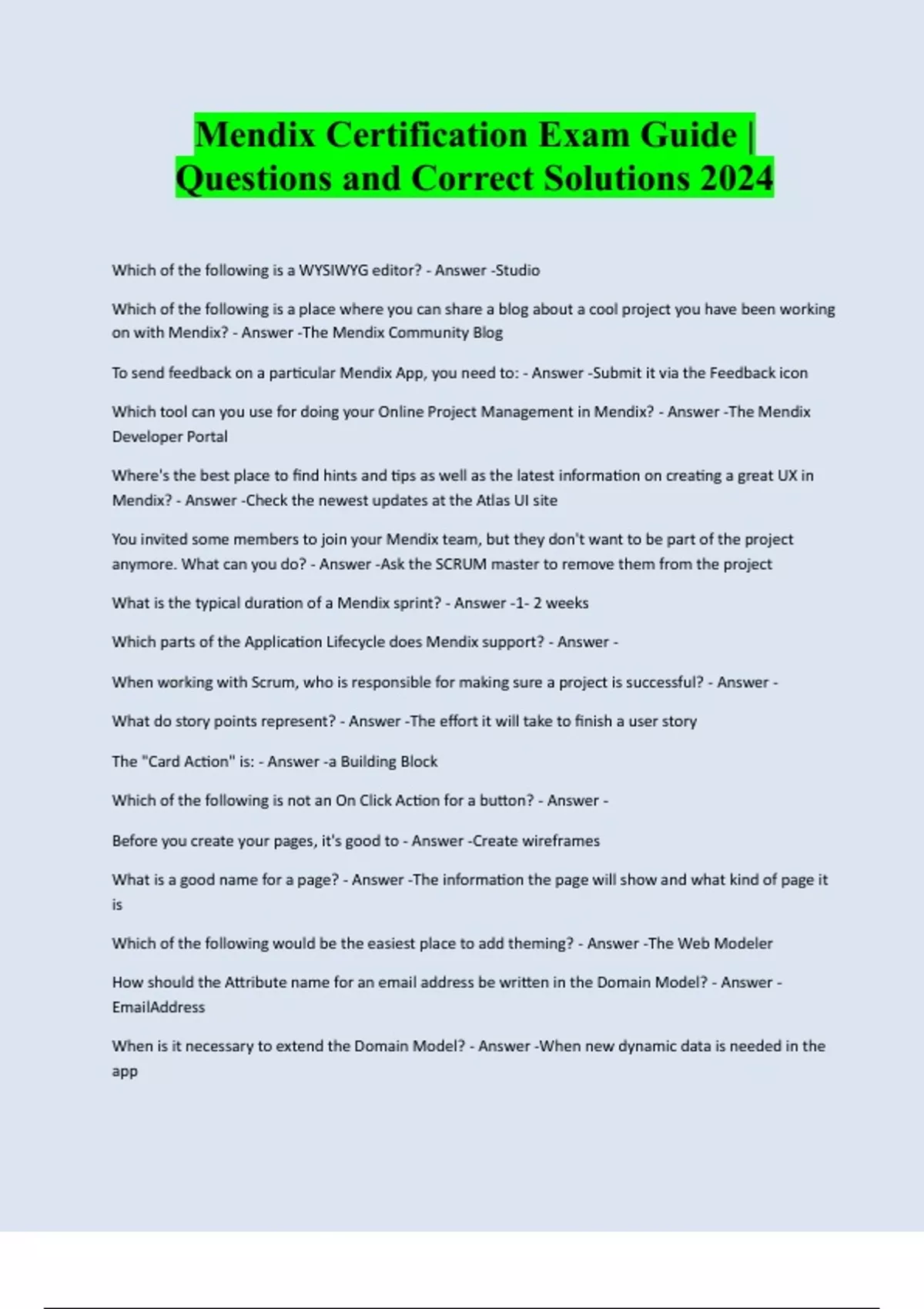 MENDIX INTERMEDIATE/ADVANCED BUNDLED EXAMS:::: QUESTIONS AND CORRECT ANSWERS | LATEST UPDATE 2025/2026