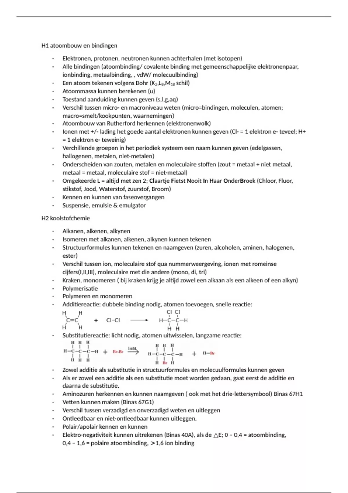 Samenvattingen Scheikunde - H5 t/m 7 + afstreeplijst alle hoofdstukken