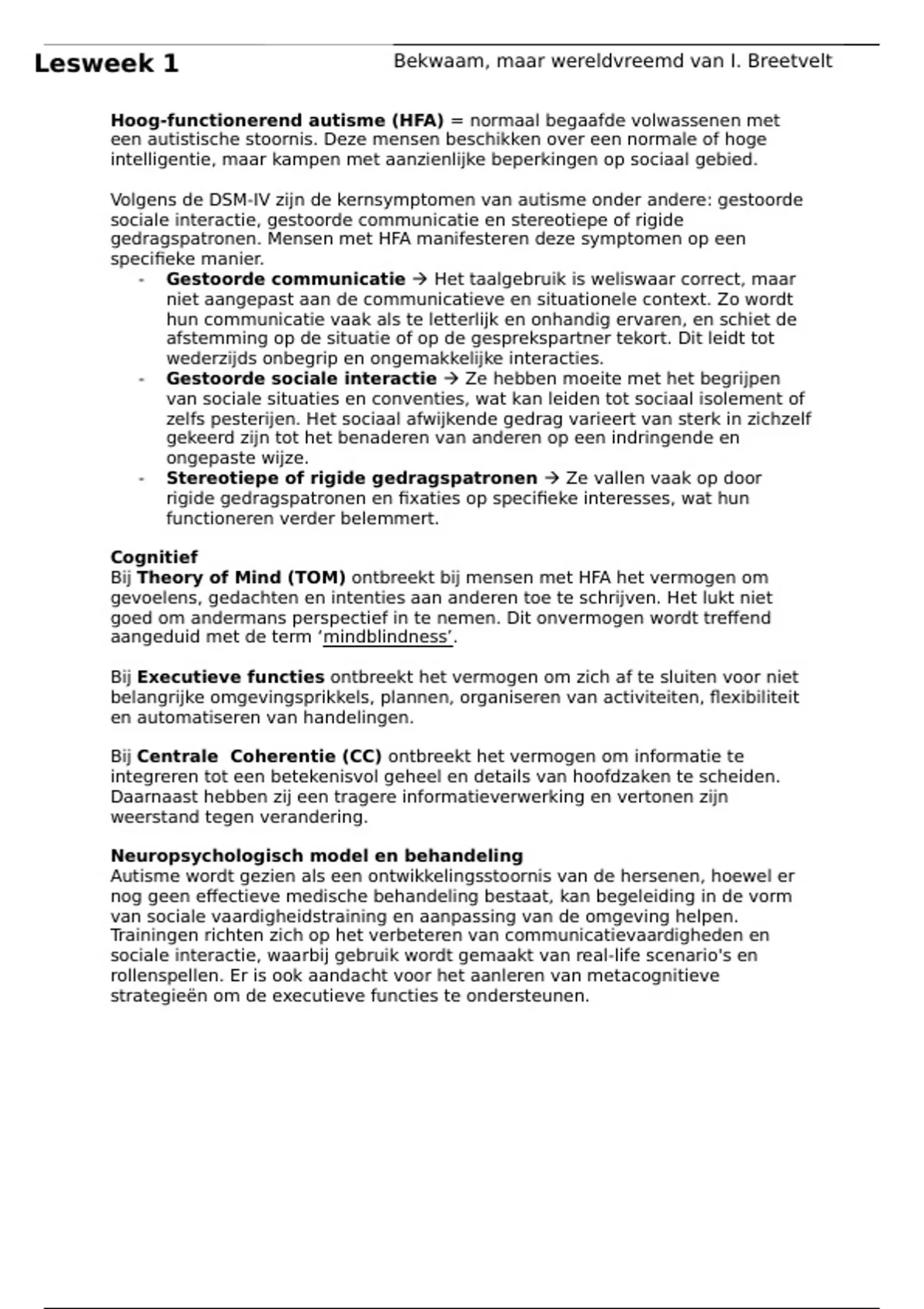 Minor Autisme - Samenvattingen
