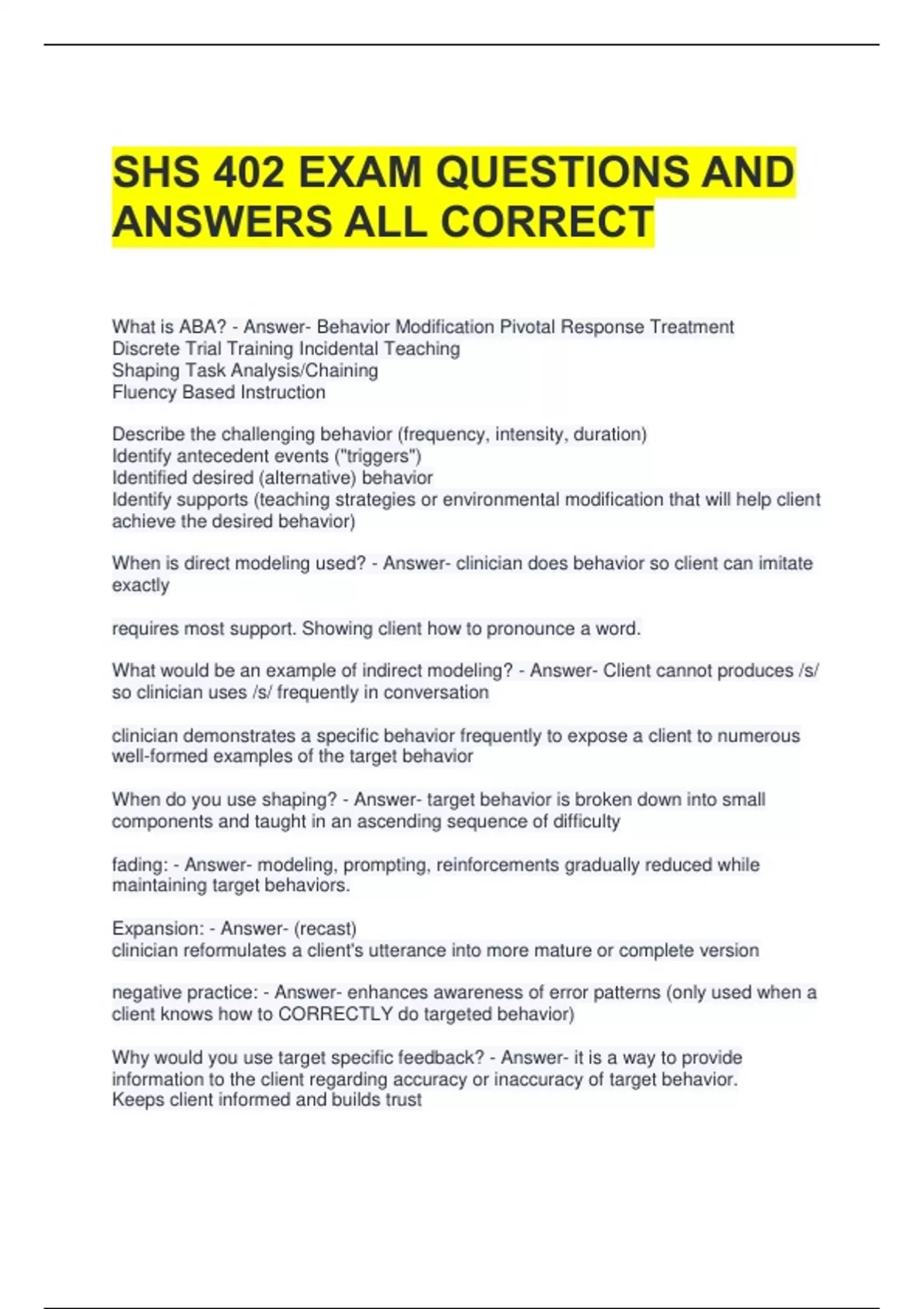 Bundle For SHS 402 Exam Questions with All Correct Answers