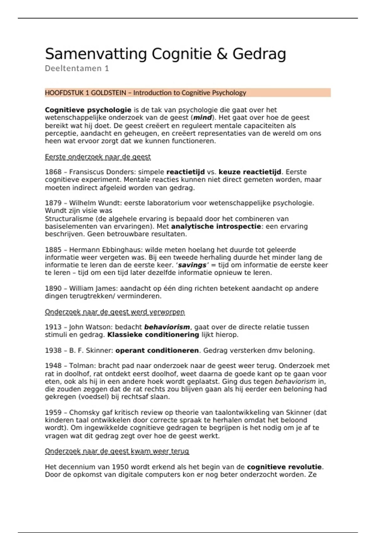 Cognitie & Gedrag bundel deeltentamen 1&2 samen!!