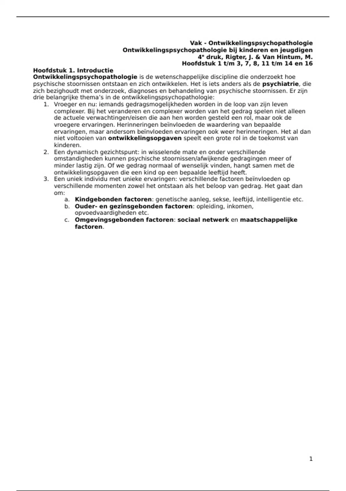 (Ontwikkelings)psychopathologie - Samenvattingen
