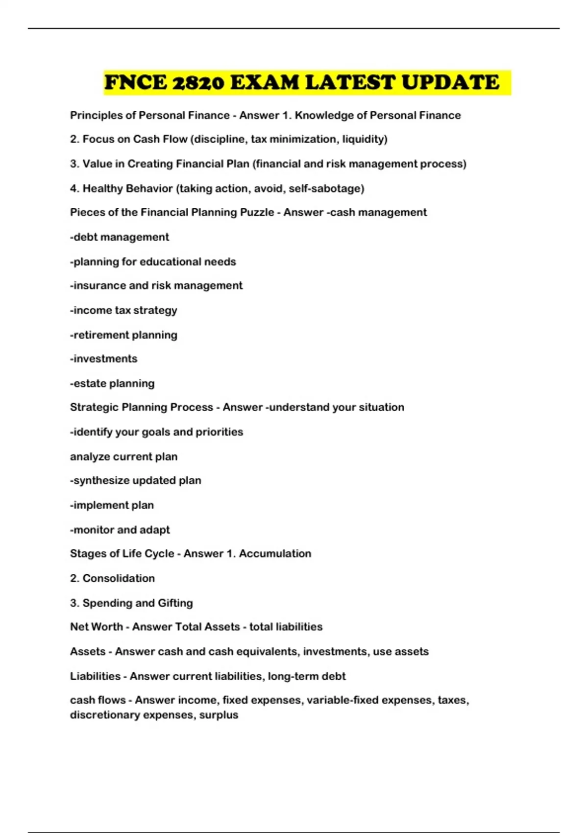 FNCE 2820 PACKAGED EXAMS WITH COMPLETE SOLUTION