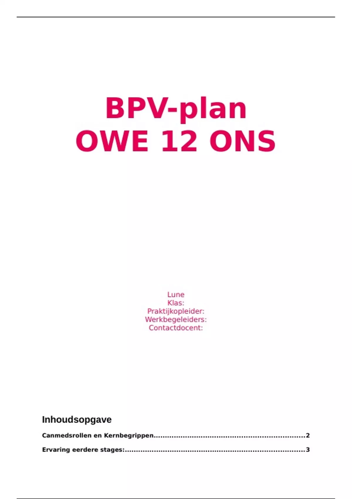 Volledig BPV-plan gebaseerd op een ziekenhuis stage. Alle Canmedsrollen kernbegrippen worden beschreven met een SMART leerdoel en een plan van aanpak. De CRM opdracht gaat over Extravasatie van een infuusvloeistof waar ik de bijbehorende powerpoint in heb toegevoegd die ik heb gebruikt bij de kennisclip. Succes met deze periode!