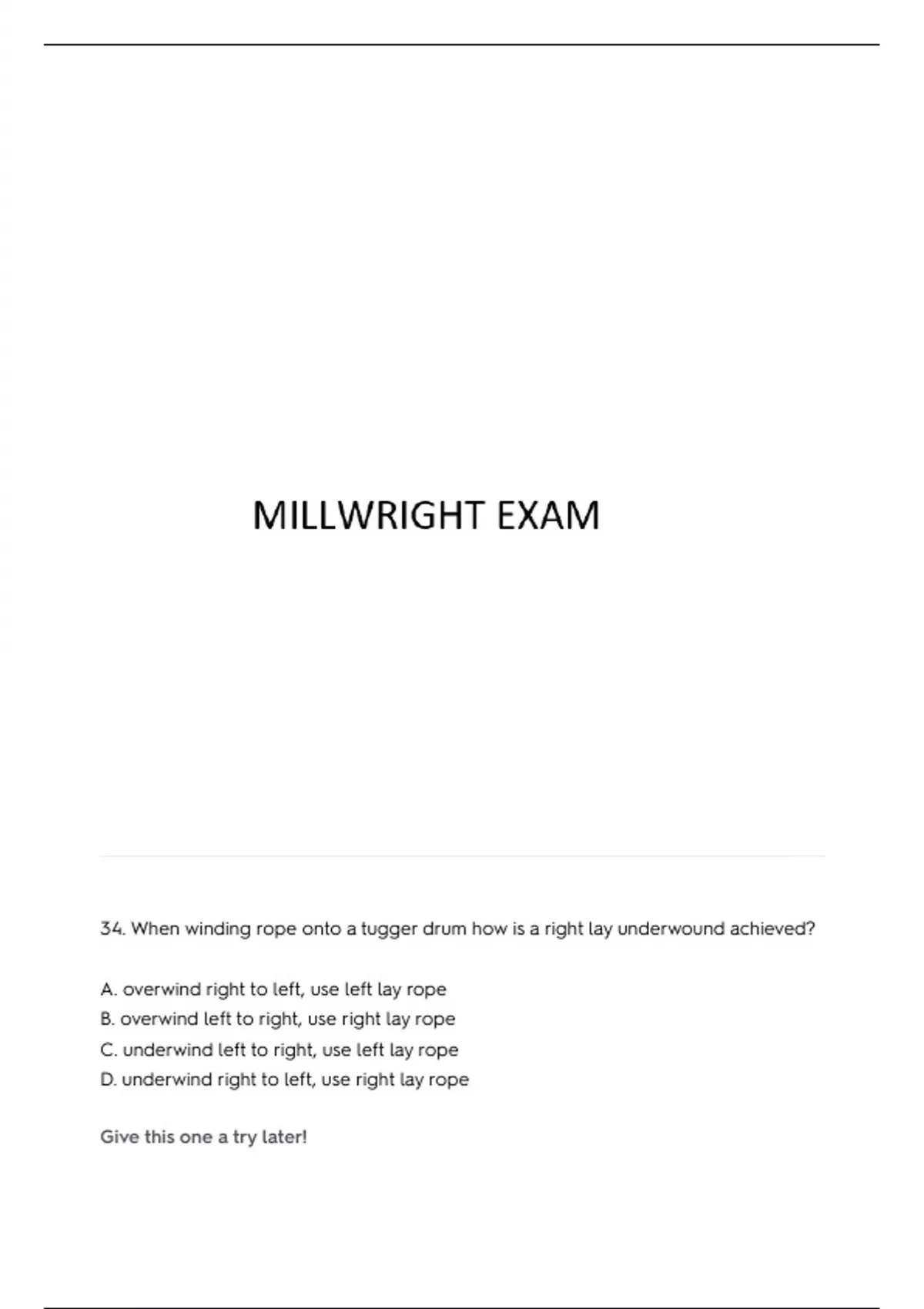 MILLWRIGHT LEVEL ONE EXAM QUESTIONS AND ANSWERS (GRADED A)
