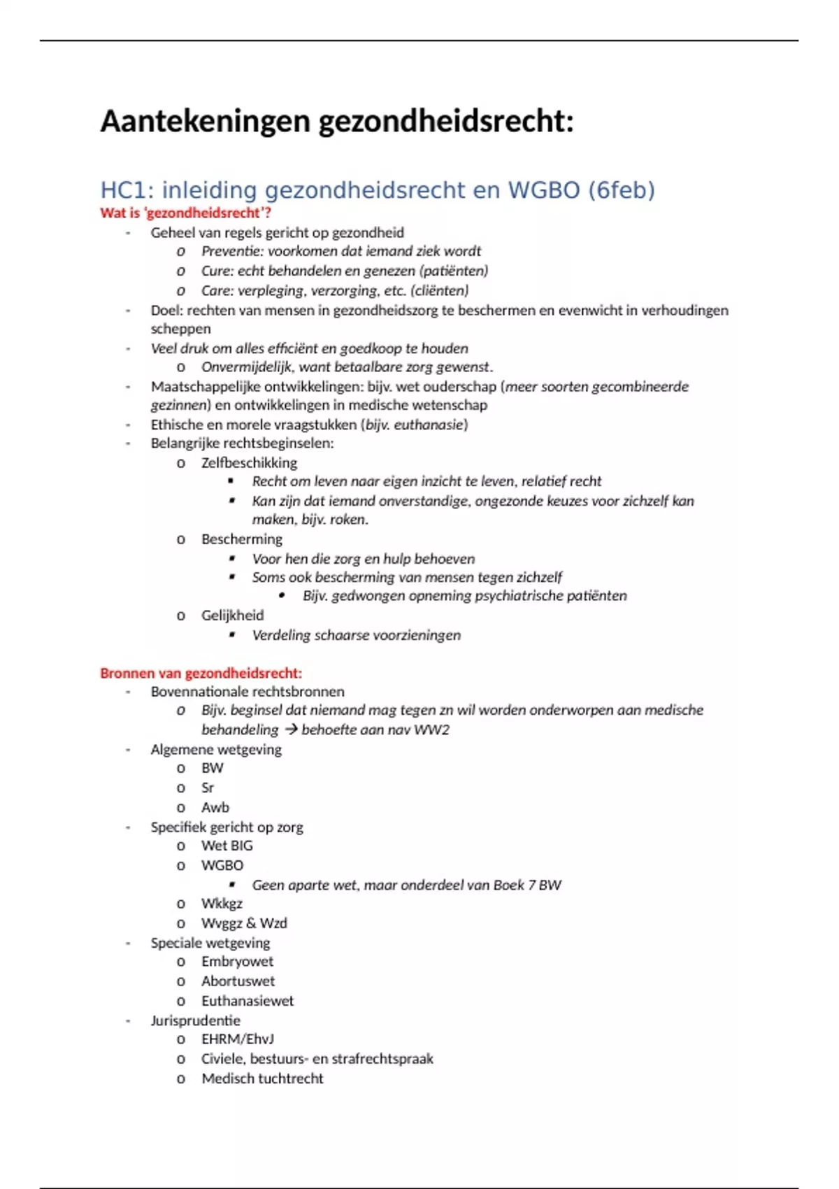 Aantekeningen hoorcolleges en werkgroepen gezondheidsrecht