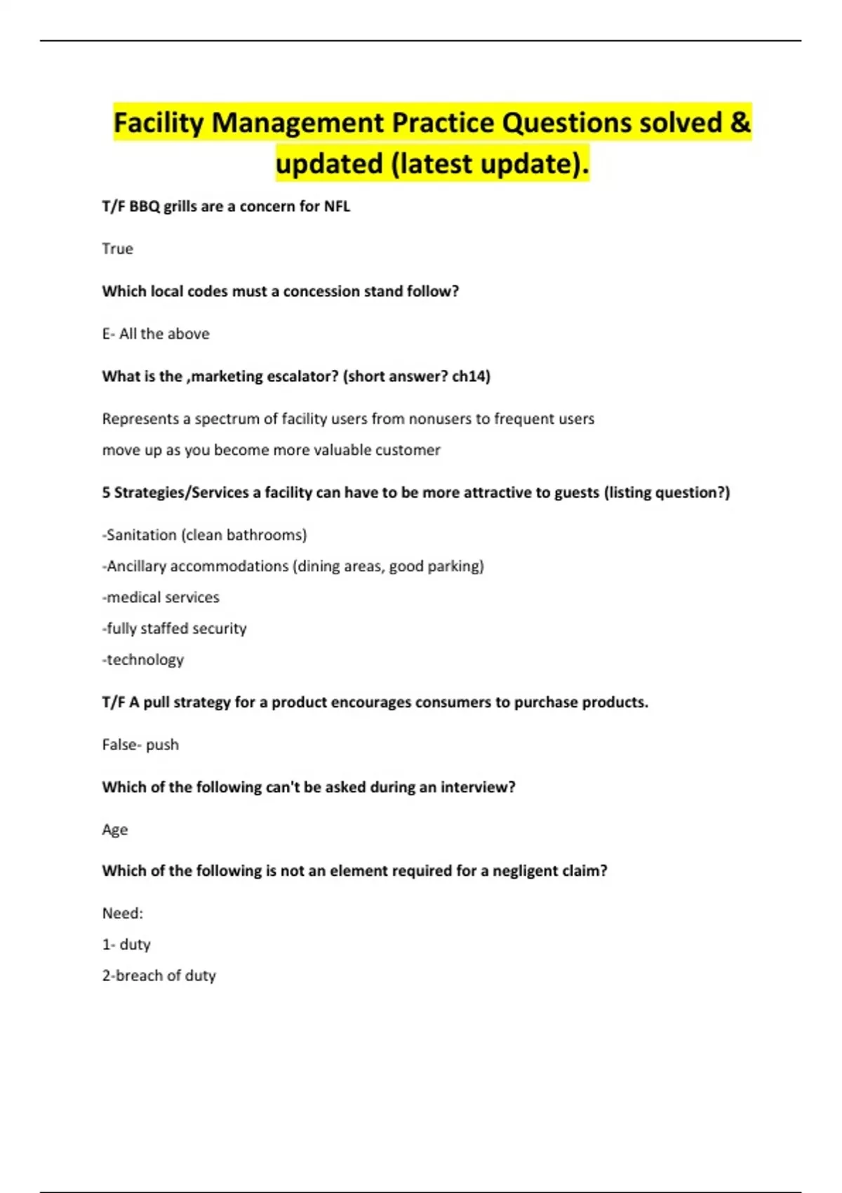 Facility Management Practice Questions solved & updated (latest update).