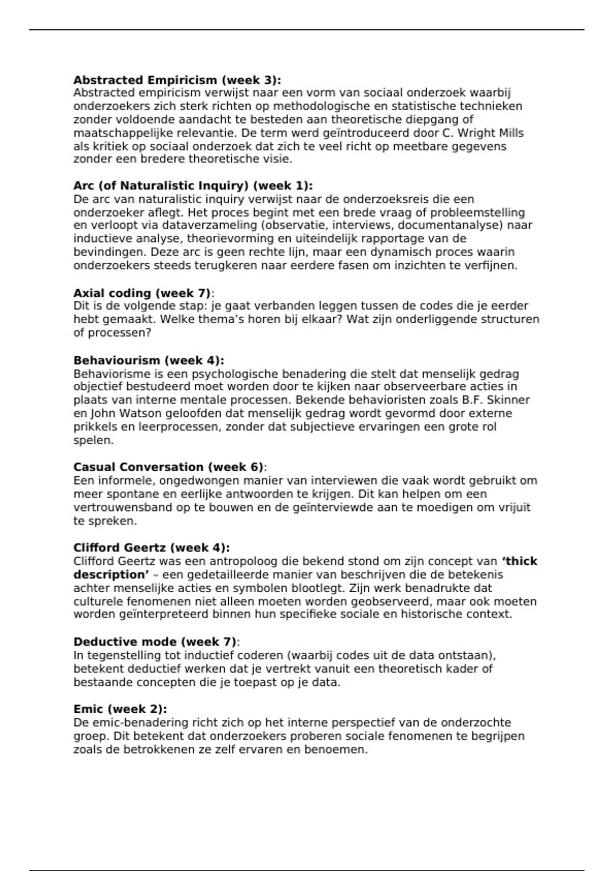 Voordeelbundel – Methodology Qualitative Methods (Beuving & De Vries, 2015) Deze bundel bevat een compleet overzicht van het boek, met: (1) key concepts (Engels met Nederlandse uitleg), (2) een samenvatting per hoofdstuk en (3) werkcollege-aantekeningen met beantwoorde research questions. Ideaal als tentamensvoorbereiding !