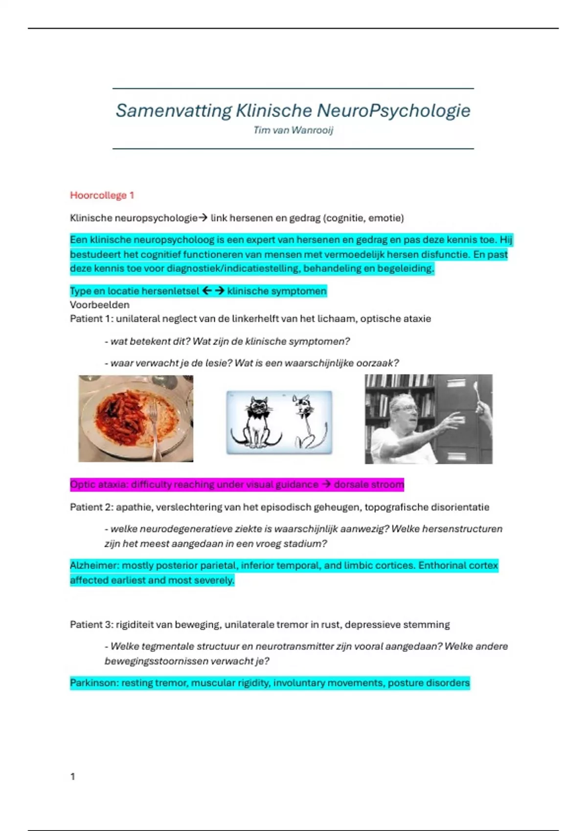 Deze bundel bevat naast een uitgebreide duidelijke samenvatting van het vak, ook nog eens een overzichtelijke weergave van het vak. Het bevat een "ALLES OP EEN RIJTJE" van zowel de hersenanatomie als een "alles op een rijtje" van alle stoornissen en syndromen. Erg handig dus voor het leren! Suc6 !