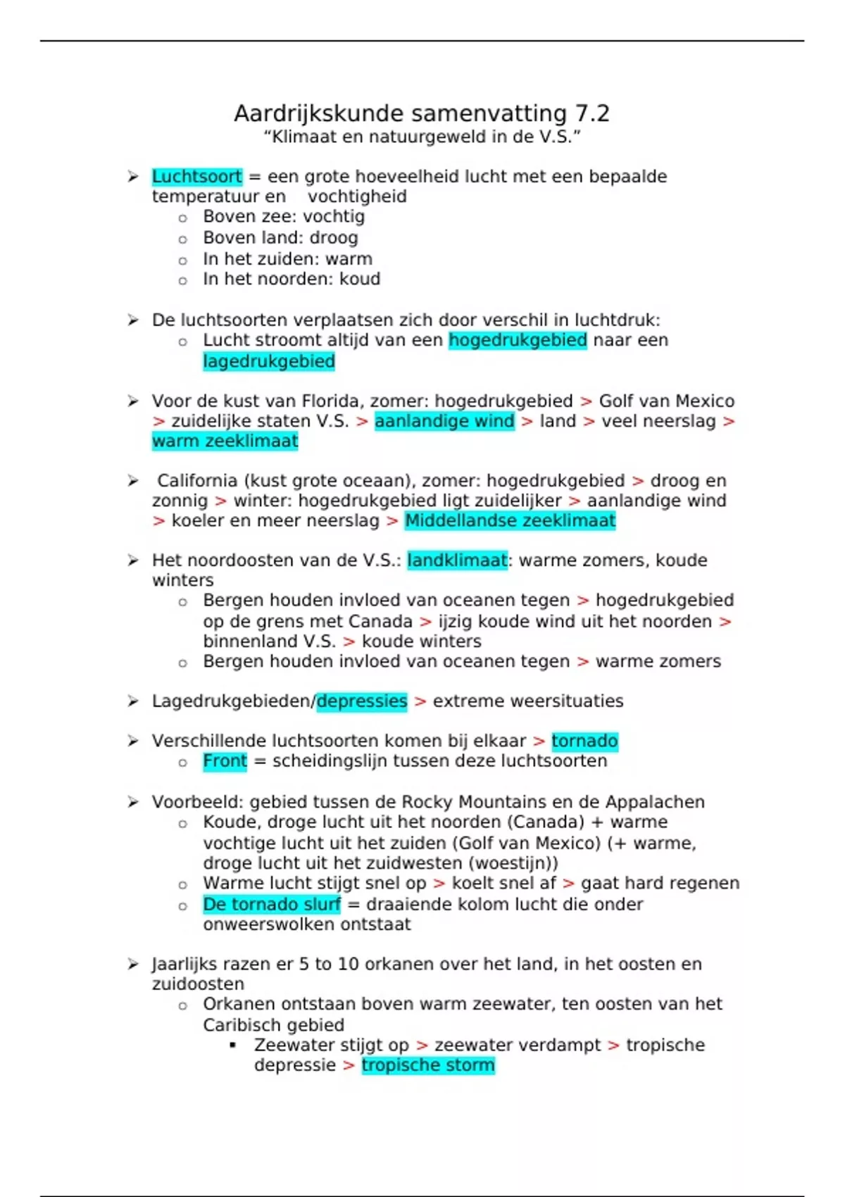 Samenvatting aardrijkskunde - 2 havo/vwo - 7.2 Klimaat en natuurgeweld in de V.S.