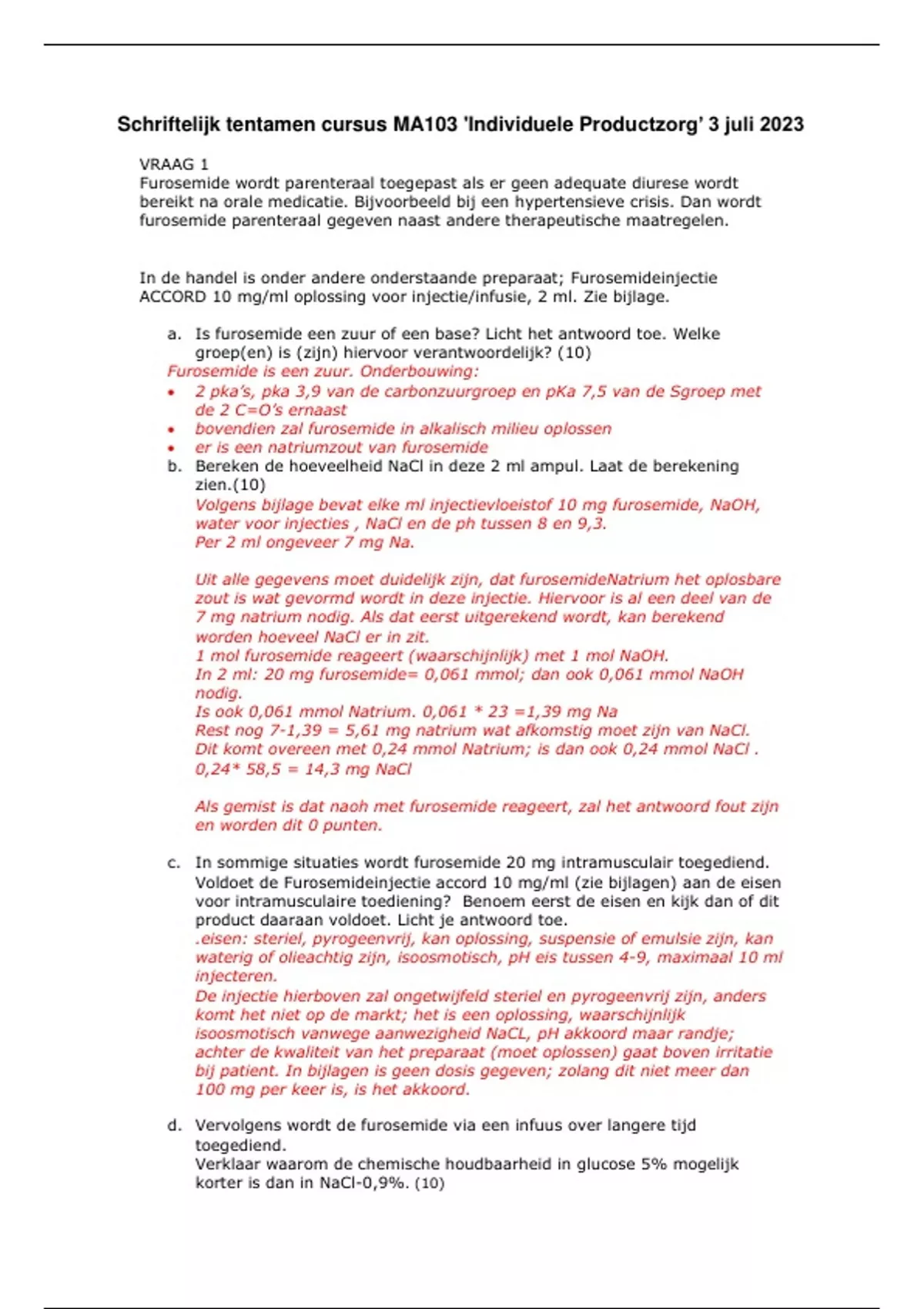 FA-MA103 Tentamen 2023 incl aanvang toets antwoordmodel.