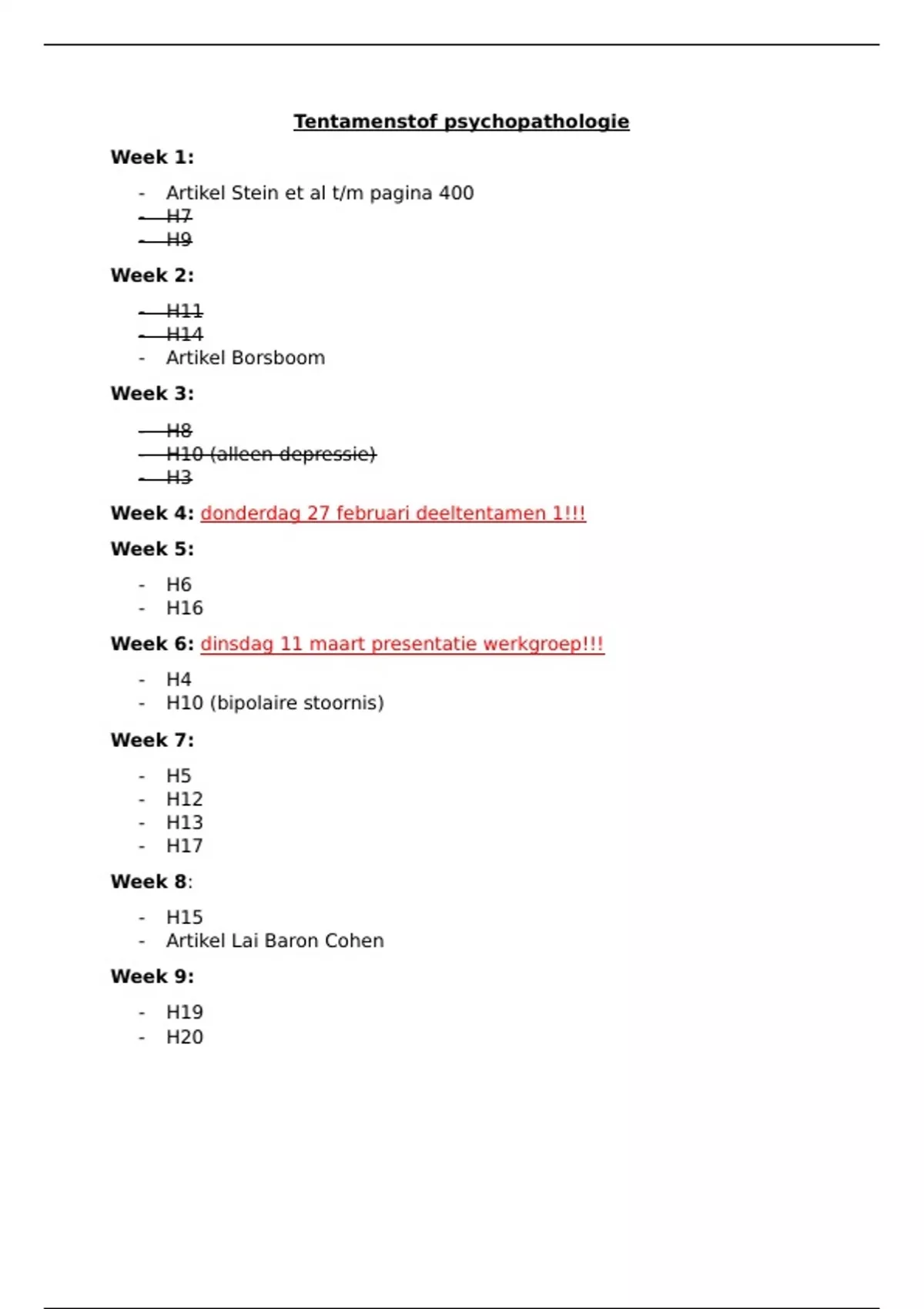 Samenvatting deeltentamen 1 & 2 psychopathologie UU