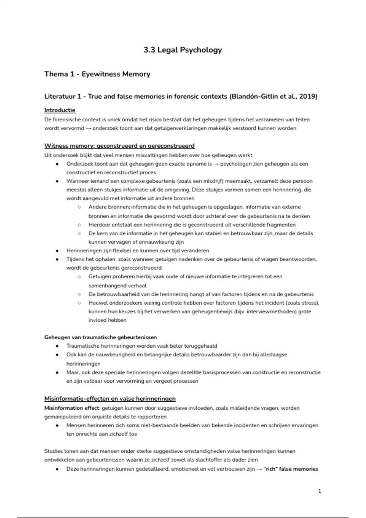 Legal Psychology - samenvatting literatuur (FSWP-K-3-6)