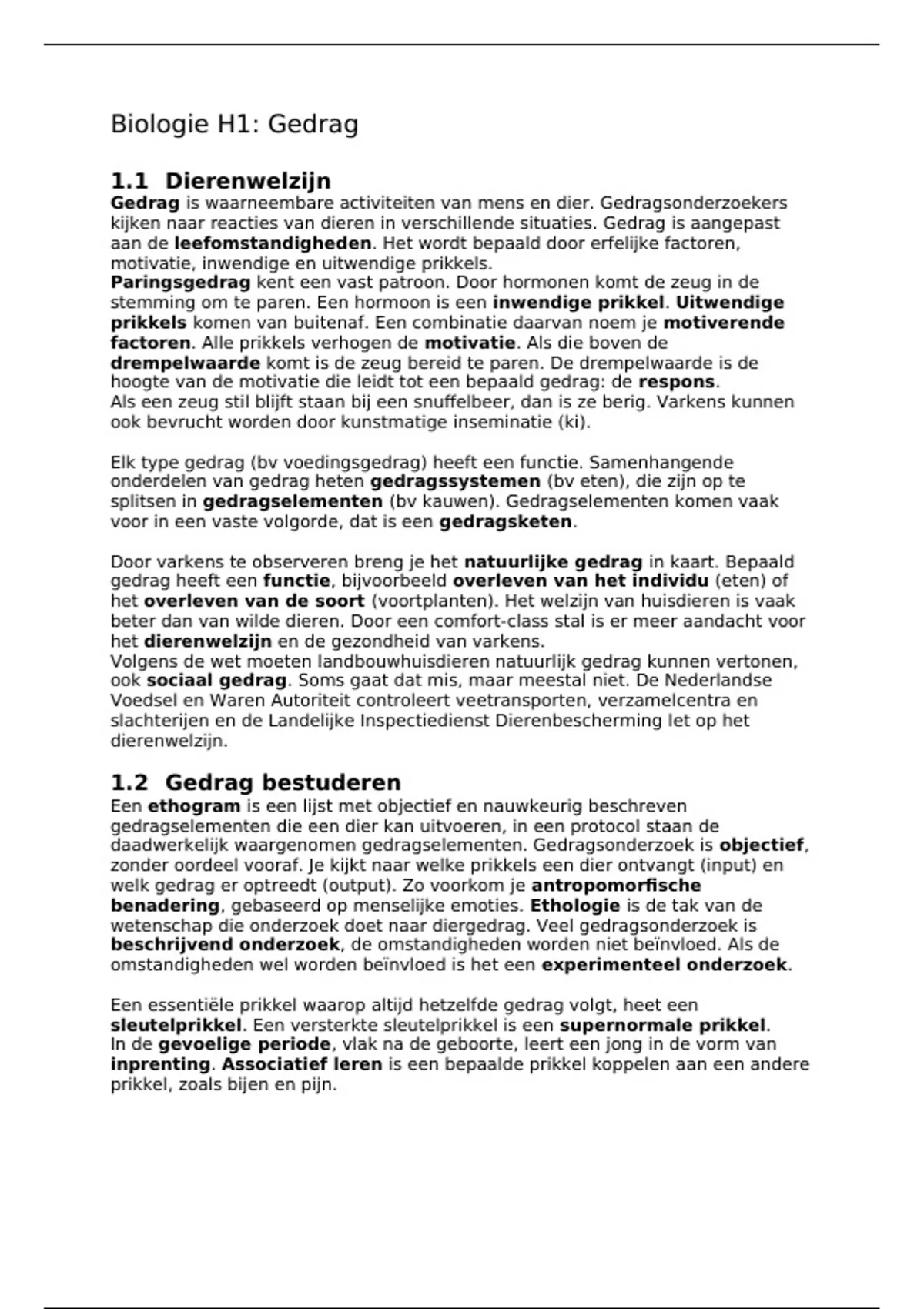 Samenvatting Biologie V4 Nectar 4e editie Hoofdstuk 1 - Gedrag