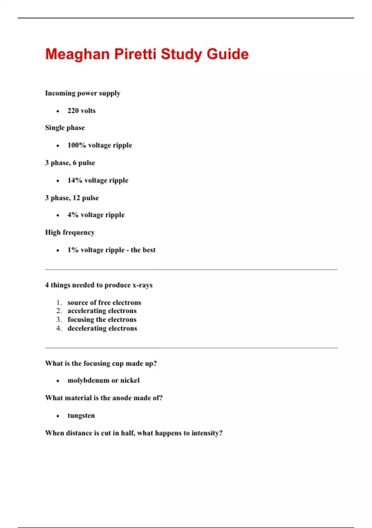 Meaghan Piretti ARRT Prep Studying Outline Questions And Correct Answers |100% Verified |Guaranteed Success | update
