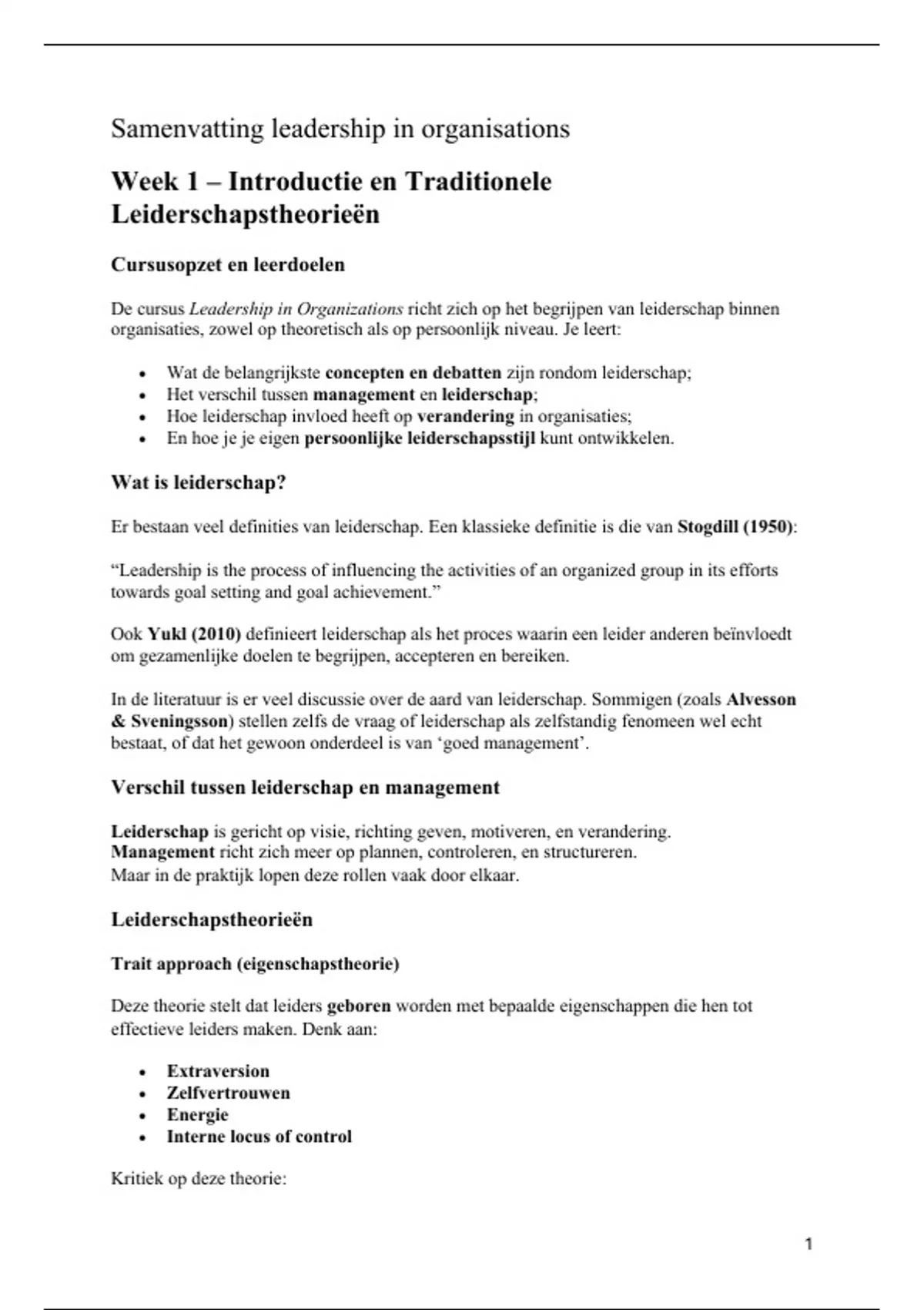 Leadership in organisations hoorcolleges + project