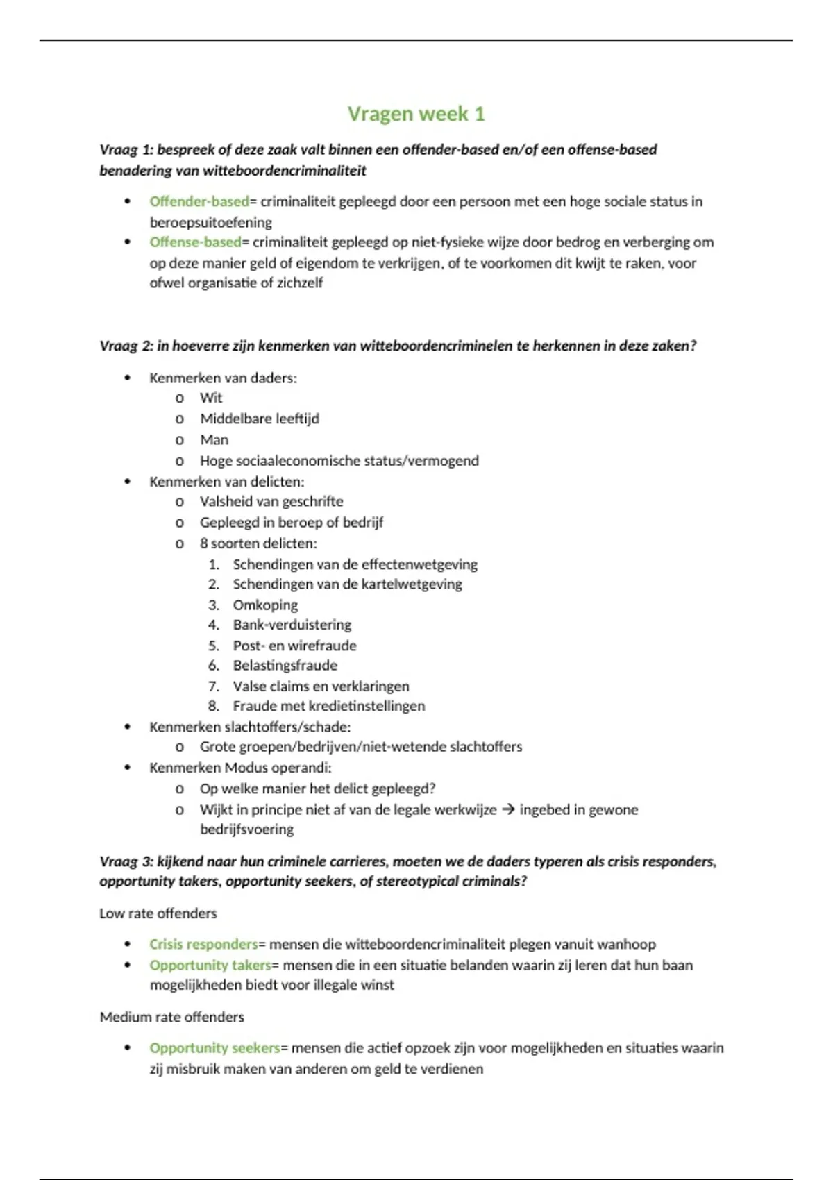 Volledige literatuur en belangrijkste begrippen per weekopdracht - financieel economische criminaliteit