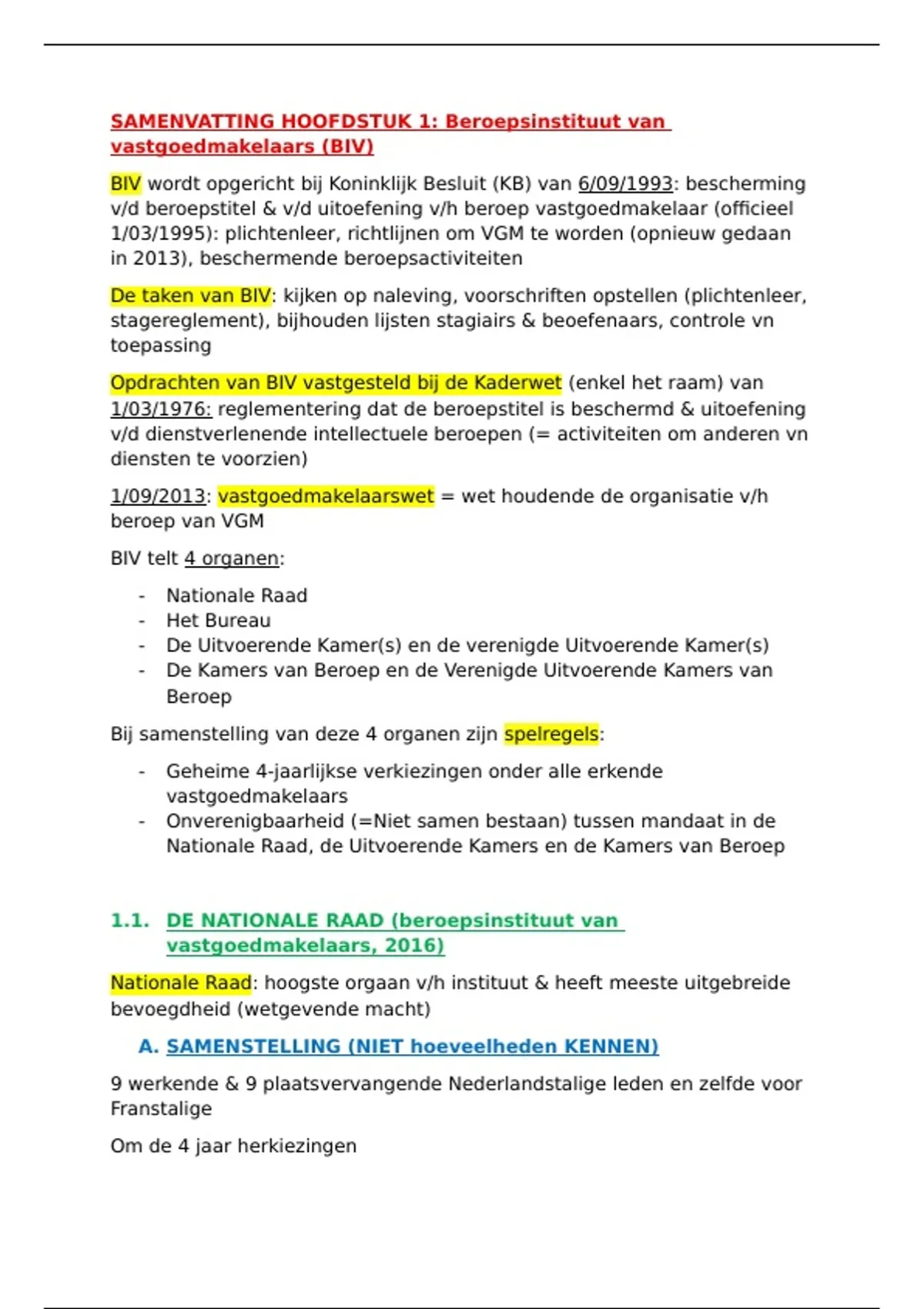 samenvatting hoofdstuk 1 beroepsinstituut van VGM - intro immobiliën