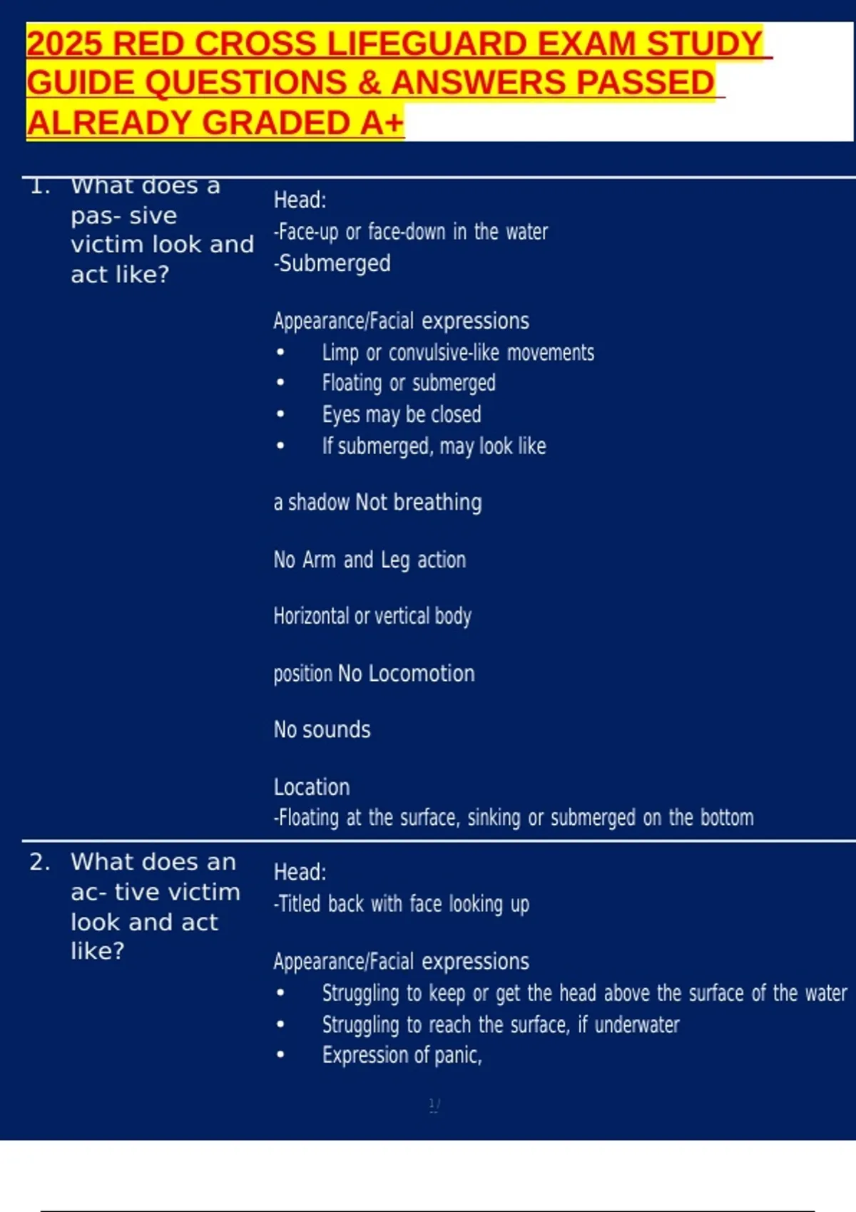2025 RED CROSS LIFEGUARD EXAM STUDY GUIDE QUESTIONS & ANSWERS PASSED ALREADY GRADED A+