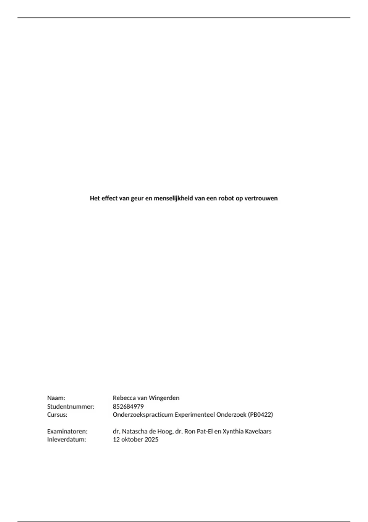 PB0422 Het effect van geur en menselijkheid van een robot op vertrouwen: verslag + output