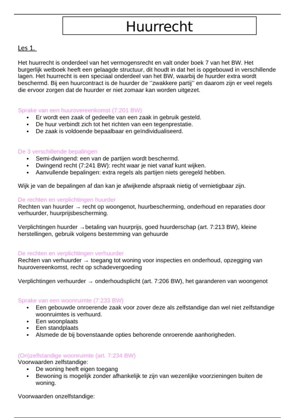 huurrecht samenvatting gehaald met een 7,5 en het assesment met een 9.