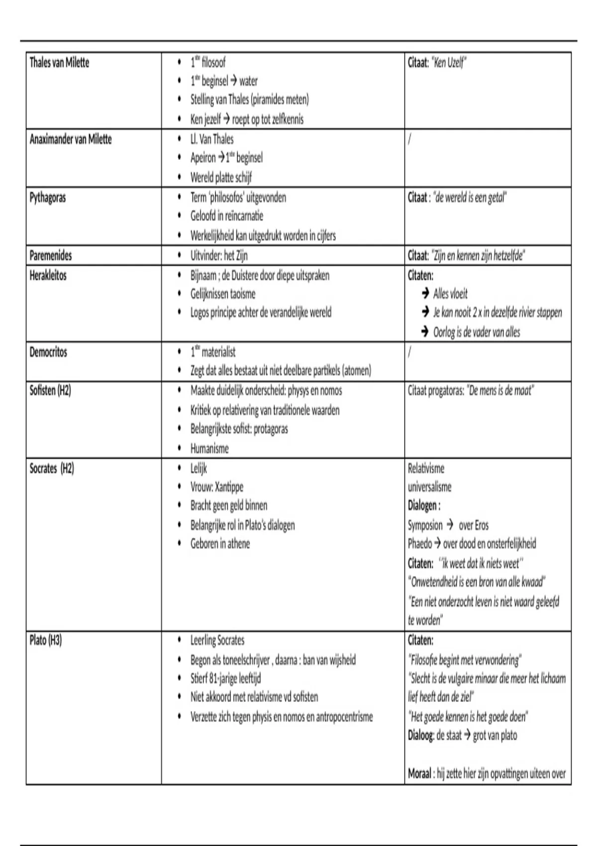 Overzicht alle filosofen met hun kenmerken en citaten. En alle hoofdstukken samengevat! (Bij H7 en 12 vielen er zaken weg dus die staan er niet bij)