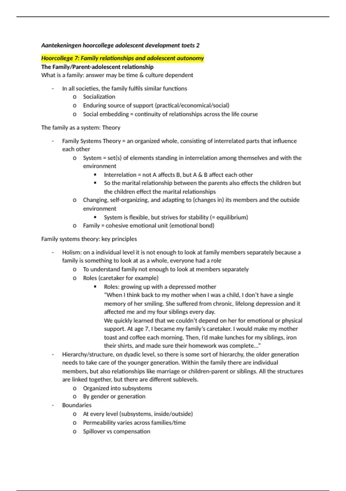 Adolescent development volledige aantekeningen en samenvatting literatuur