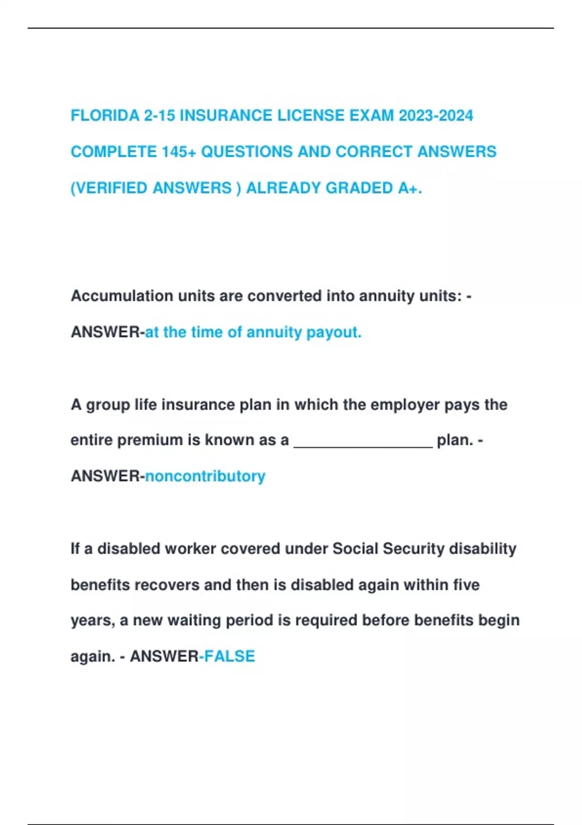 FLORIDA 2-15 INSURANCE EXAM |ACTUAL COMPLETE 100 QUESTIONS AND CORRECT DETAILED ANSWERS (VERIFIED ANSWERS ) ALREADY GRADED A+. FLORIDA 2-15 INSURANCE LICENSE EXAM COMPLETE 145+ QUESTIONS AND CORRECT ANSWERS Florida 2-15 Insurance Exam | Most Recent Exam 2026 | Actual Complete Real Exam Questions And Correct Answers