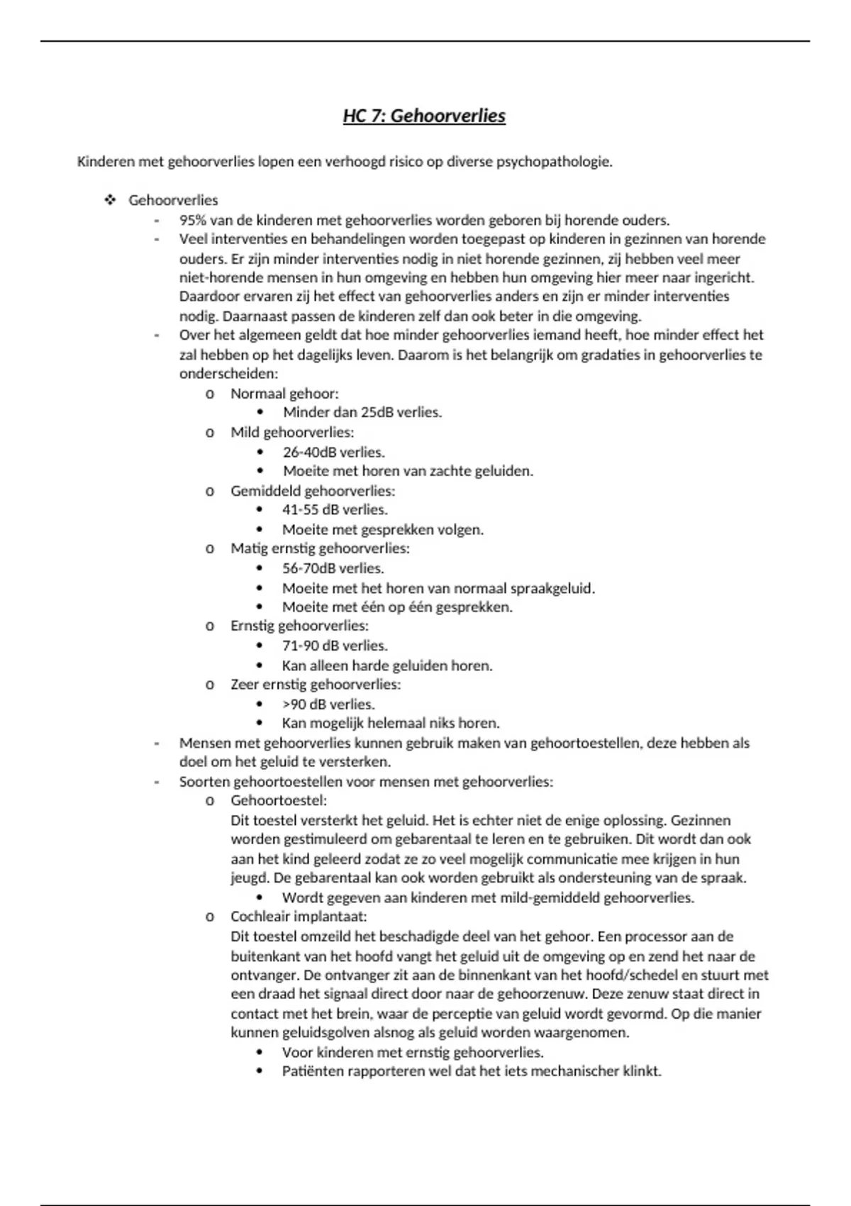 Bundel Ontwikkelingspsychopathologie Hoorcolleges: 8.6 voor tentamen!