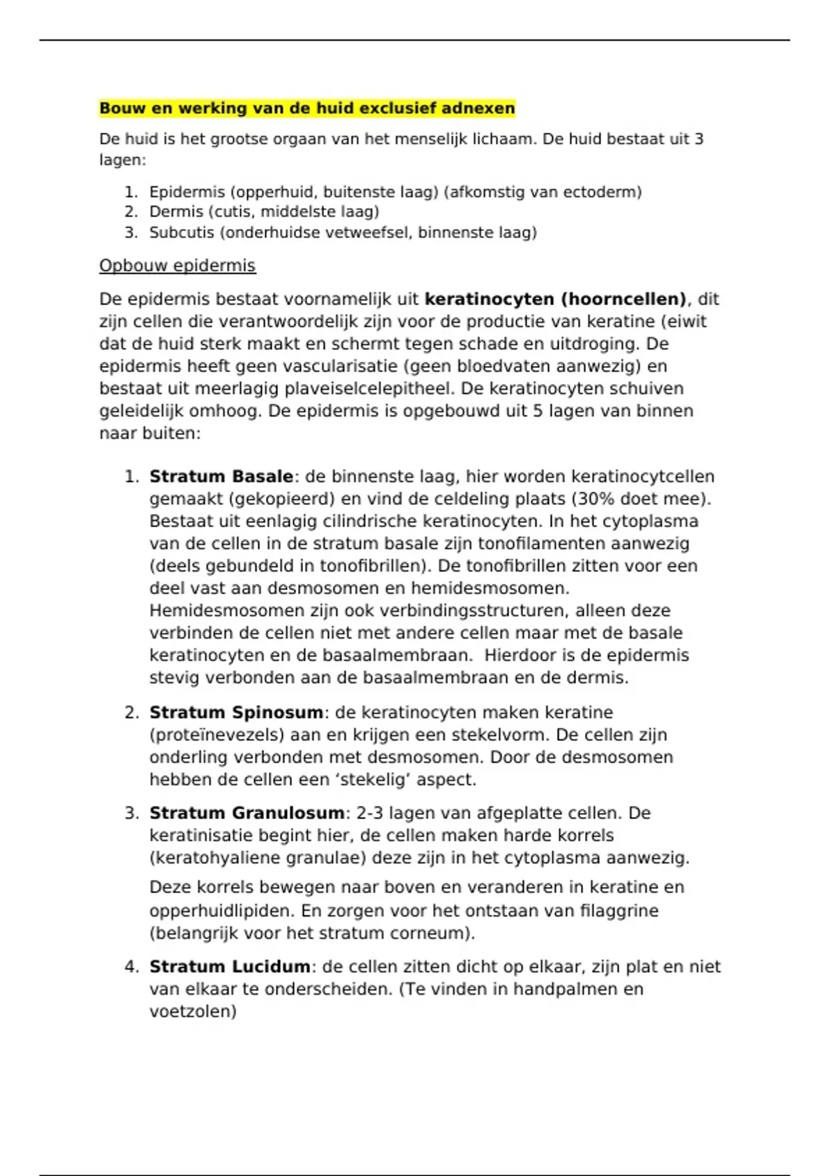 Deze samenvatting betreft algemene informatie over de drie lagen van de huid, inclusief informatie over de verschillende huidannexen.