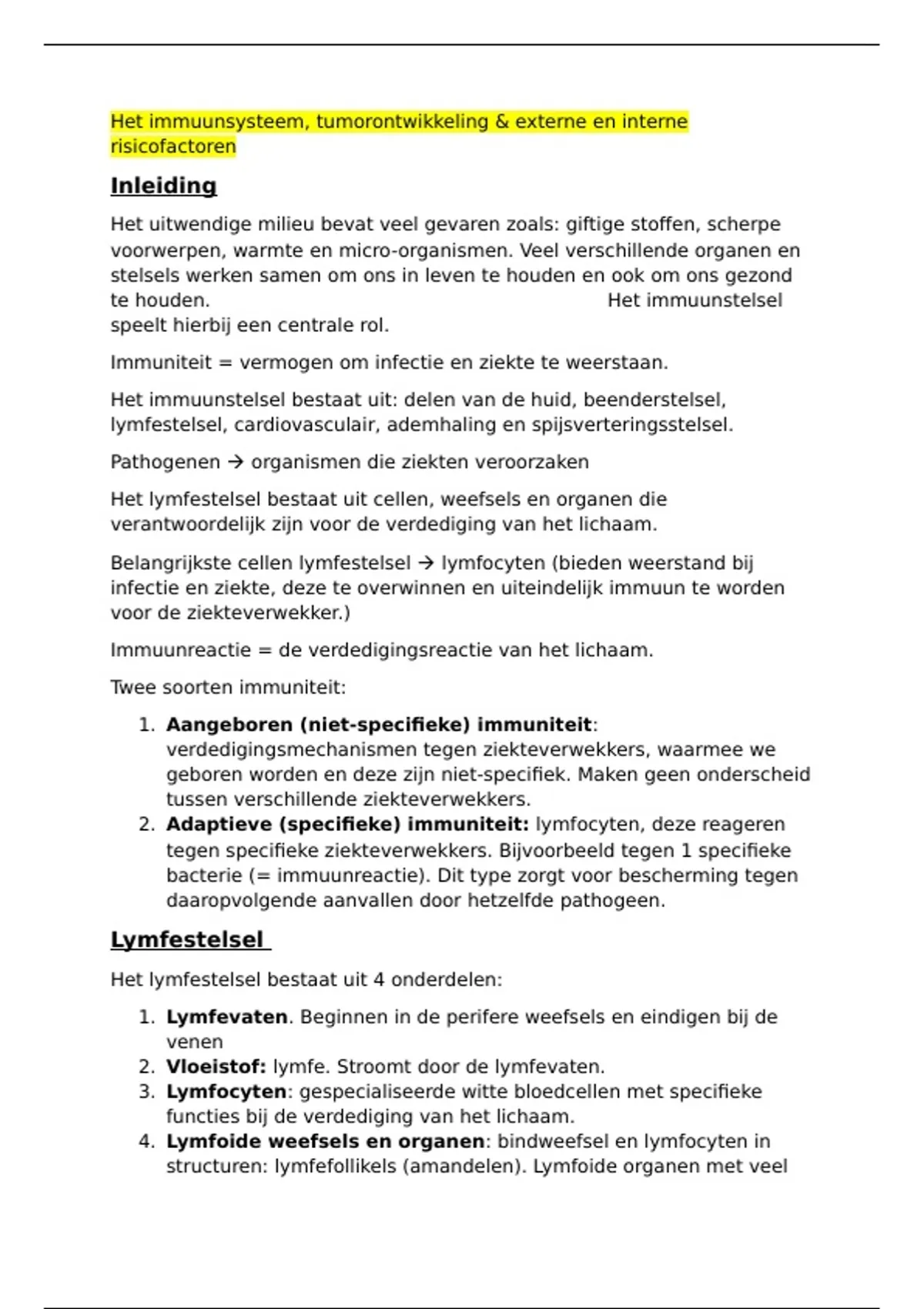 Samenvatting Immuunsysteem