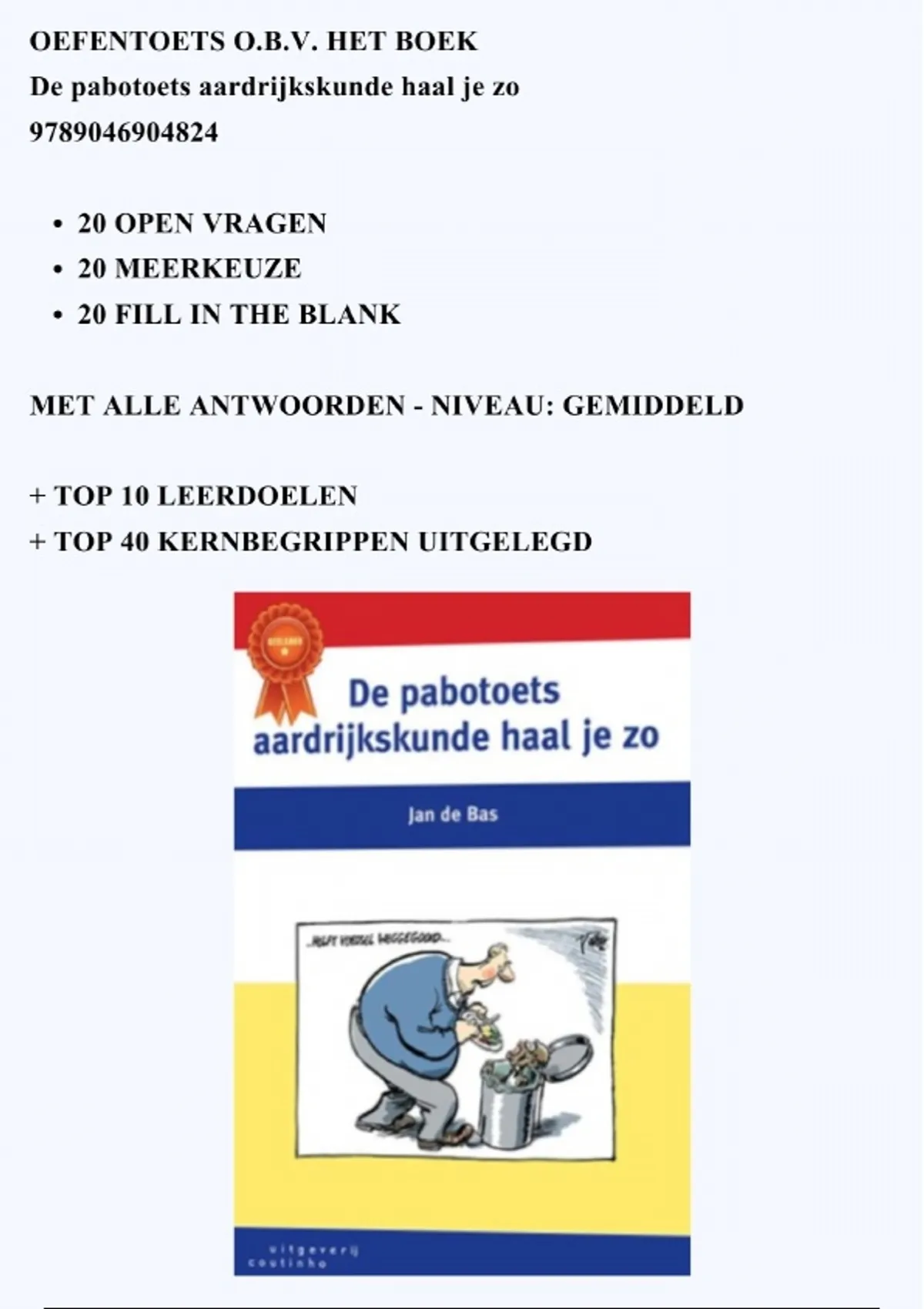 In deze bundel alles dat je nodig bent voor de Landelijke Kennisbasis PABO Aardrijkskunde 2026. De complete samenvatting o.b.v. het boek (haal je zo....), de oefentoets met alle antwoorden, de leerdoelen en de belangrijkste kernbegrippen op een rij. Super compleet, alles in 1.