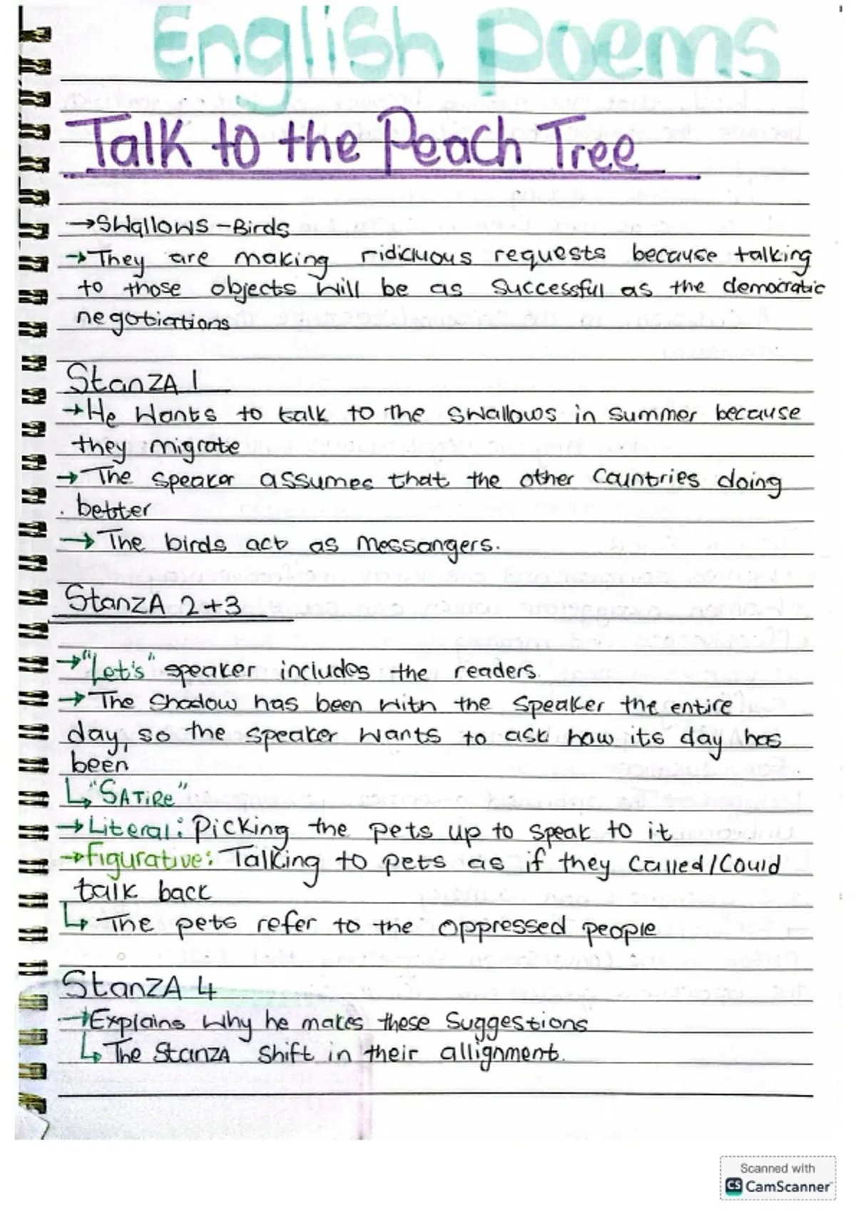 Two English poems NSC the first one : talks to the Peach tree, second one: the morning sun is shining. Both fully analysed with a line by line analysis
