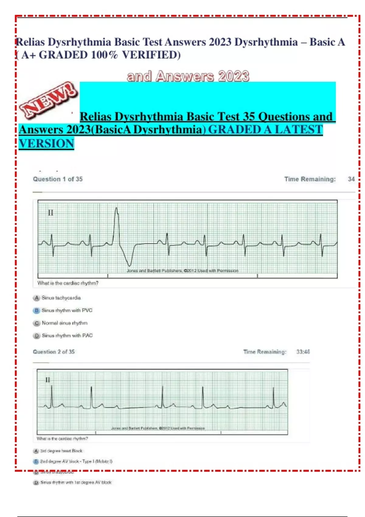 Relias Dysrhythmia Basic Test Answers 2023 Dysrhythmia – Basic A ( A+ GRADED 100% VERIFIED)
