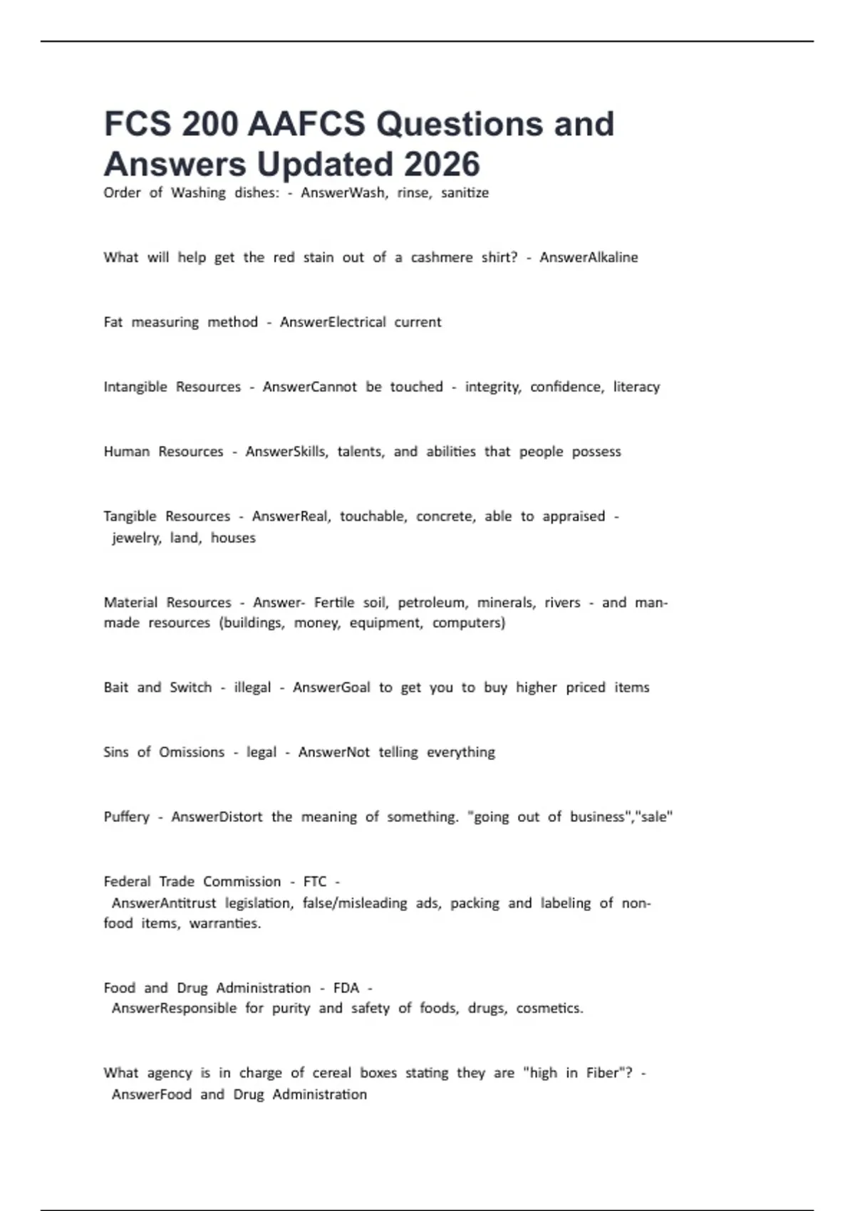 FCS 200 AAFCS Questions and