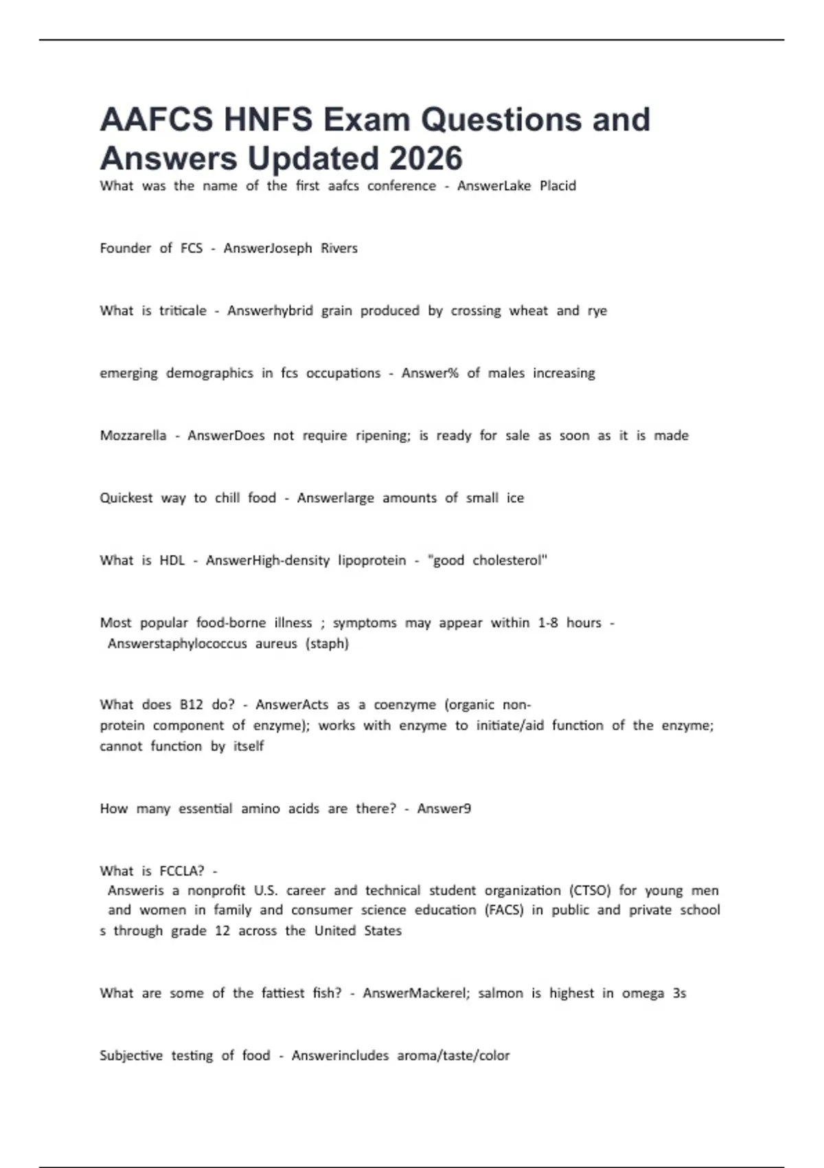 AAFCS HNFS Exam Questions and