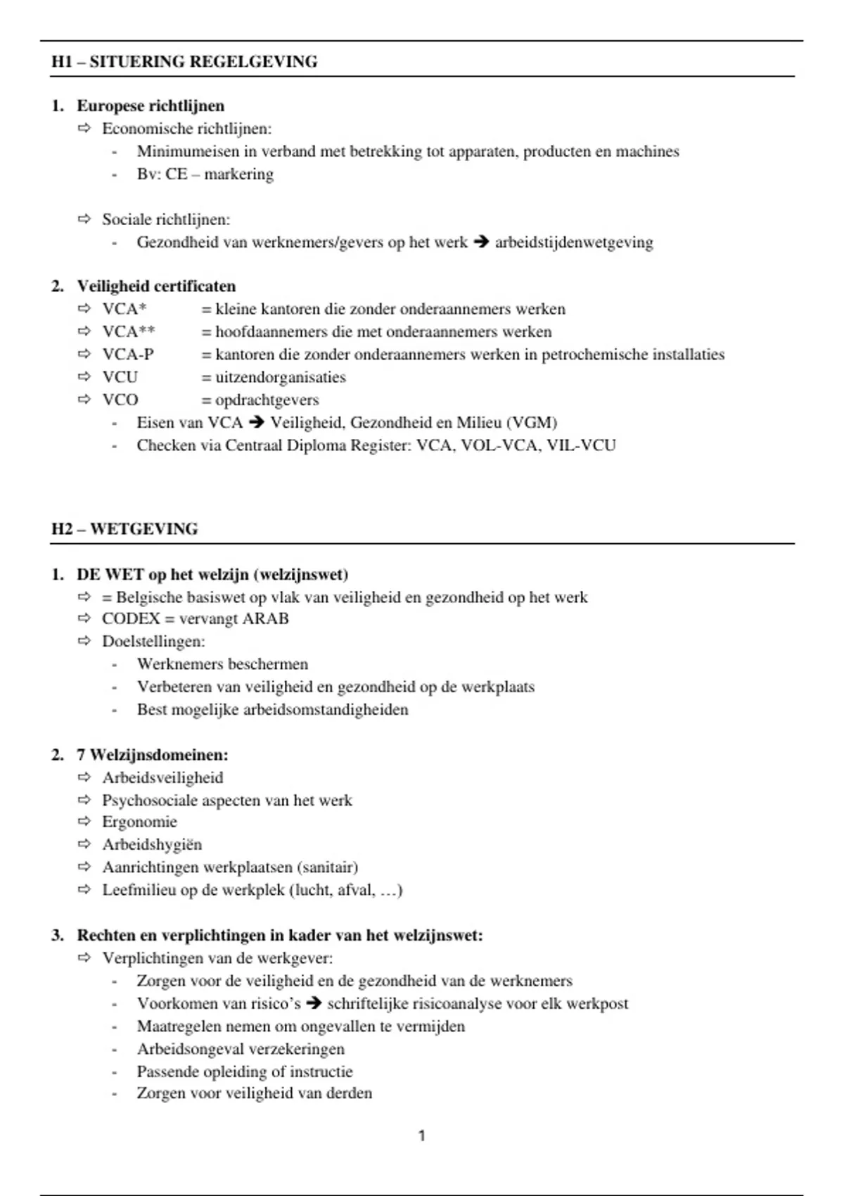 H1 – SITUERING REGELGEVING