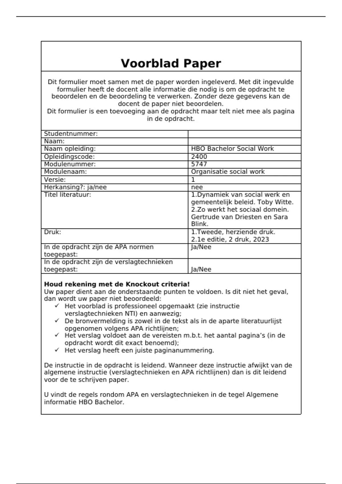 Dit formulier moet samen met de paper worden ingeleverd. Met dit ingevulde
