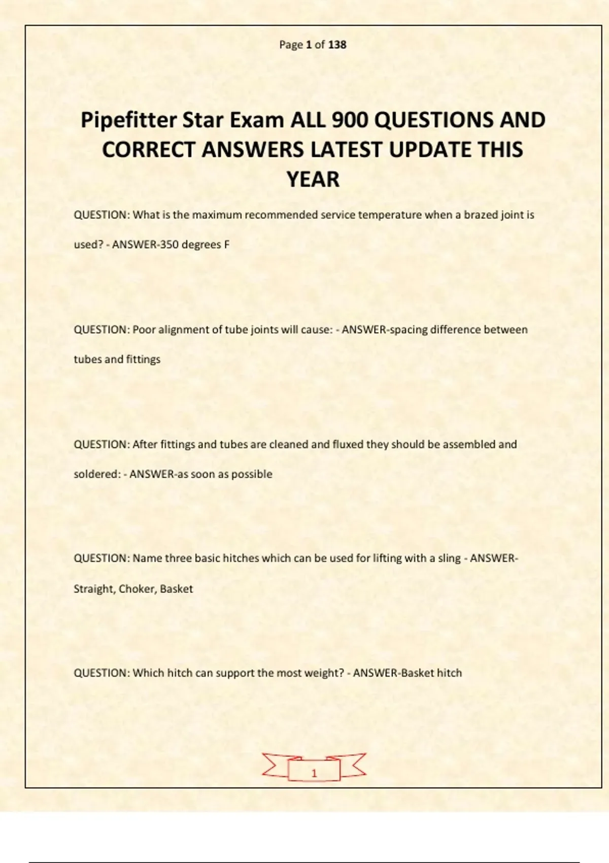 Pipefitter Star Exam ALL 900 QUESTIONS AND