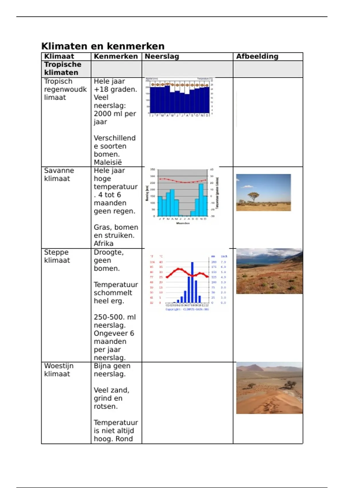 Samenvatting Overzicht van alle klimaten & kenmerken Aardrijkskunde (Heel belangrijk voor de toets! Incl. neerslaggrafieken)