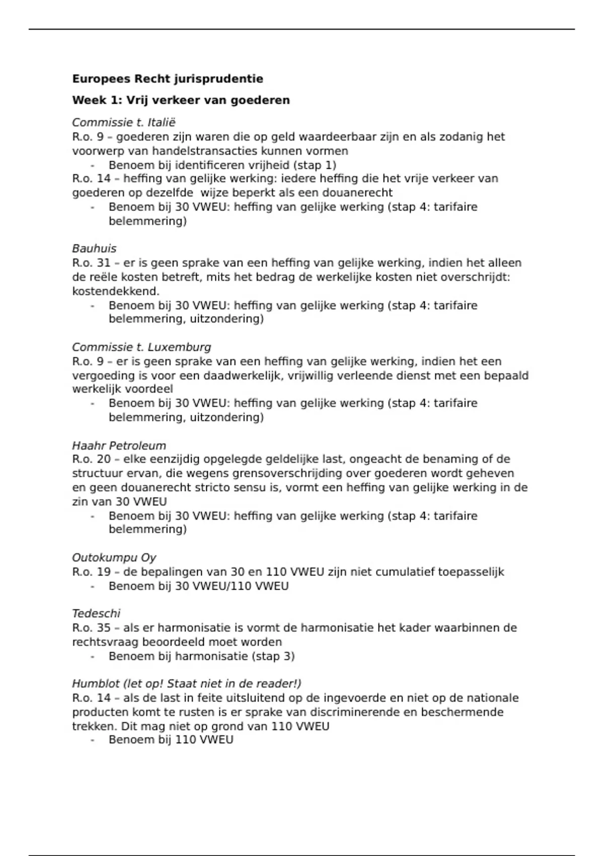 In dit document vind je per week alle voorgeschreven arresten. Let op: sommige arresten zijn niet voorgeschreven en staan niet in de reader, maar zijn wel besproken in de colleges, dus zijn wel relevant voor het tentamen! Ieder arrest wordt beschreven aan de hand van de belangrijke rechtsoverwegingen. Daarnaast kun je vinden wanneer je ze moet/kunt benoemen.