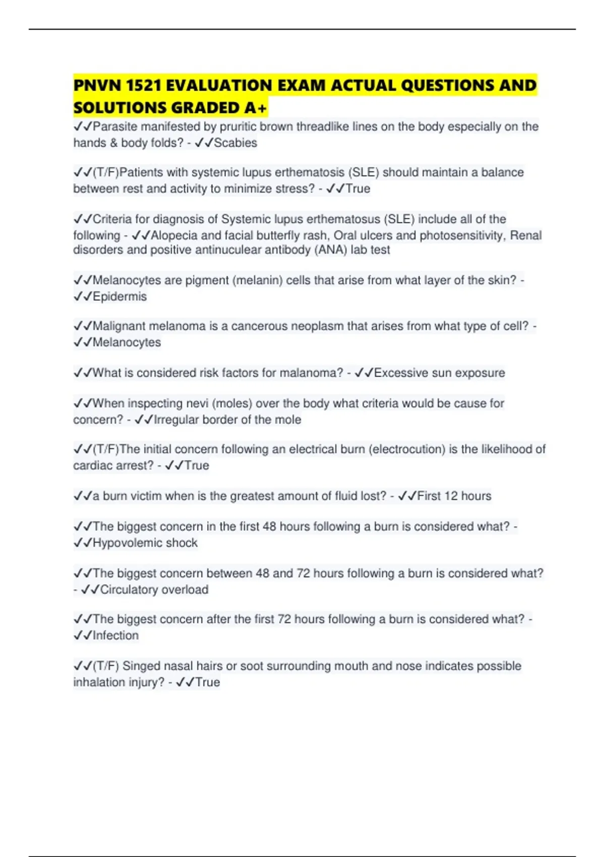 PNVN 1521 EVALUATION EXAM ACTUAL QUESTIONS AND SOLUTIONS GRADED A+