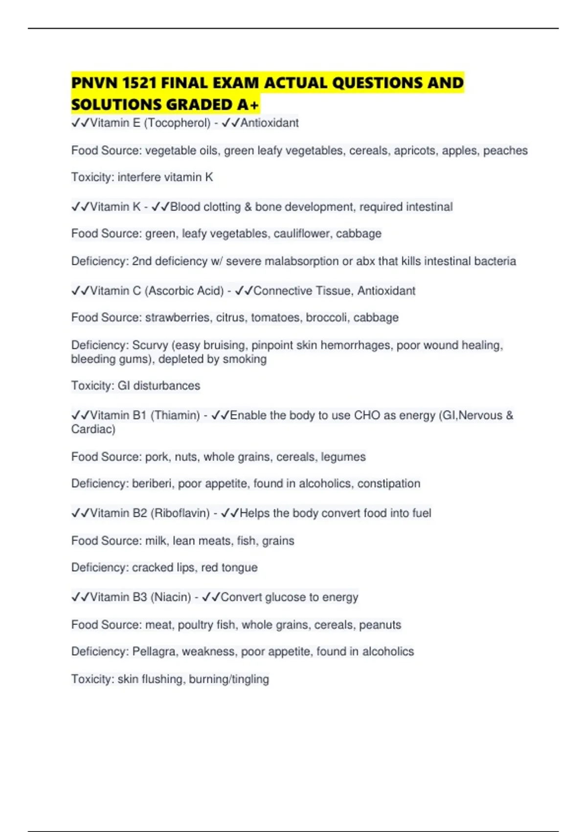 PNVN 1521 FINAL EXAM ACTUAL QUESTIONS AND SOLUTIONS GRADED A+