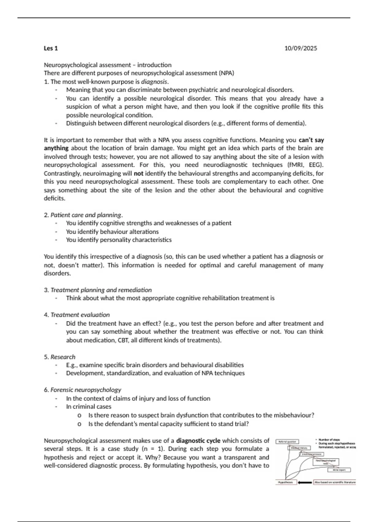Neuropsychological assessment makes use of a diagnostic cycle which consists of