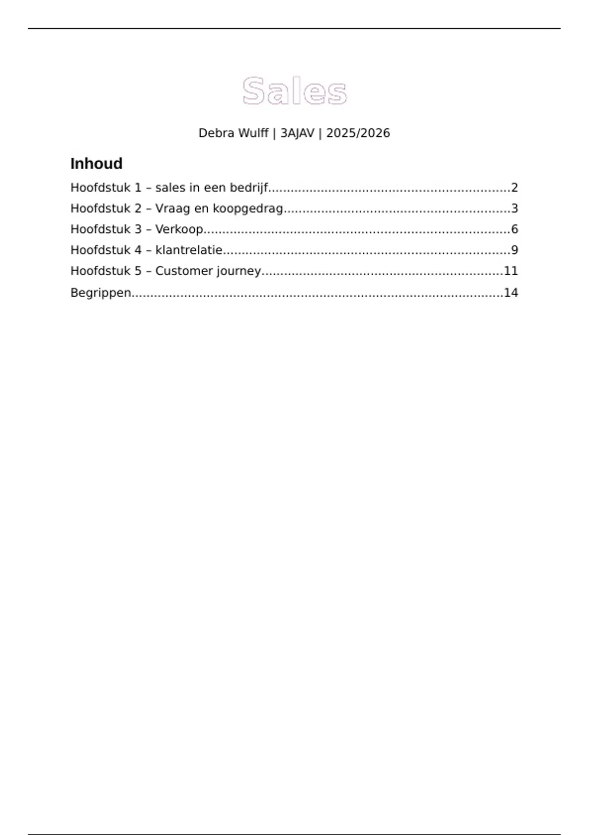 Dit is een samenvatting voor het basis deel van Sales op de opleiding Junior Accountmanagement. De samenvatting is kort, duidelijk en overzichtelijk ingedeeld waardoor leren makkelijk is.