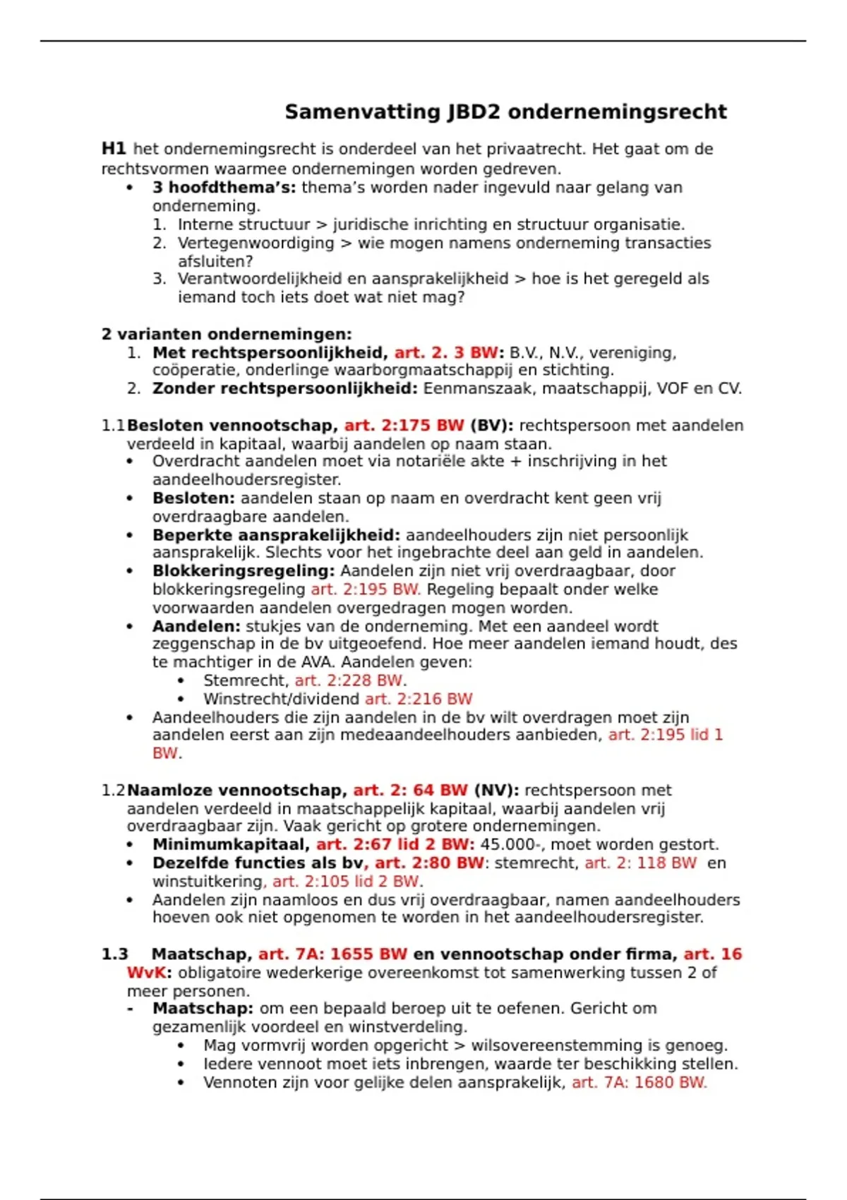 samenvatting de kern van het ondernemingsrecht voor JBD2 onderdeel ondernemingsrecht.