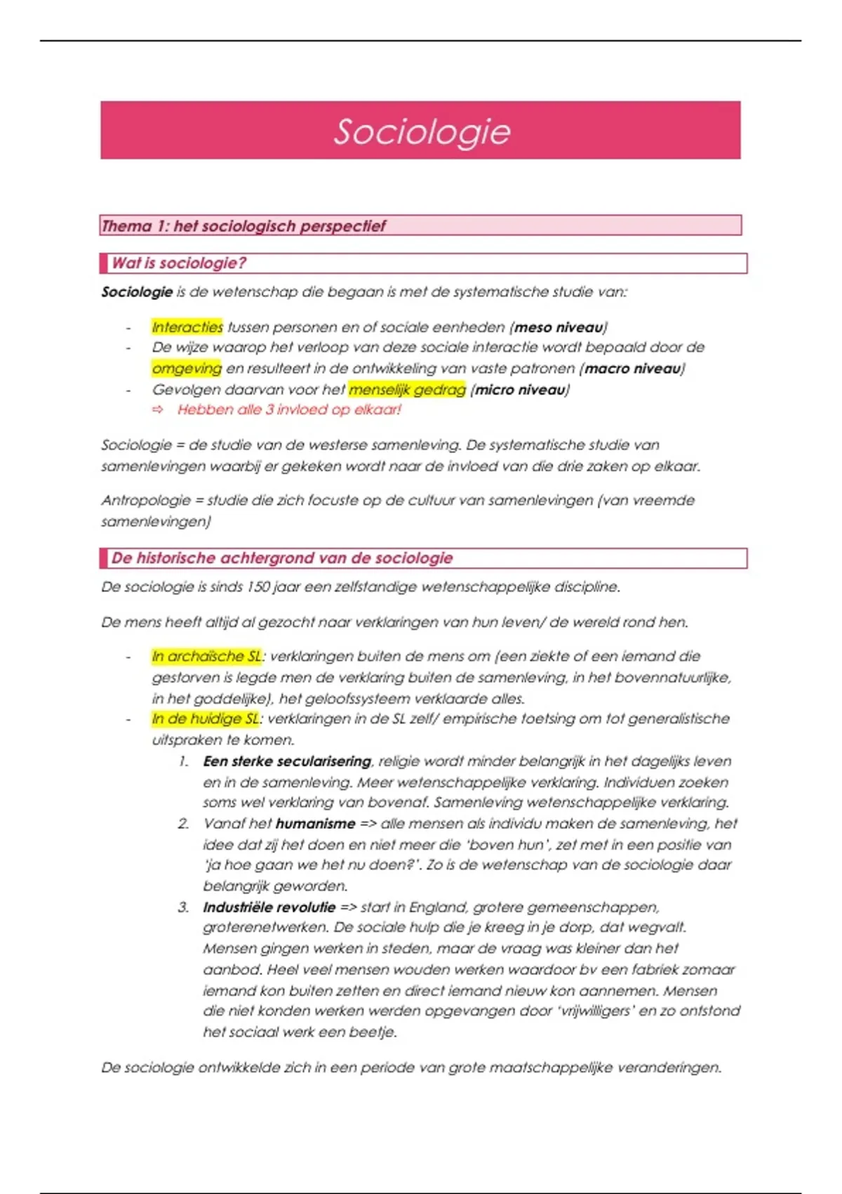 Sociologie = de studie van de westerse samenleving. De systematische studie van