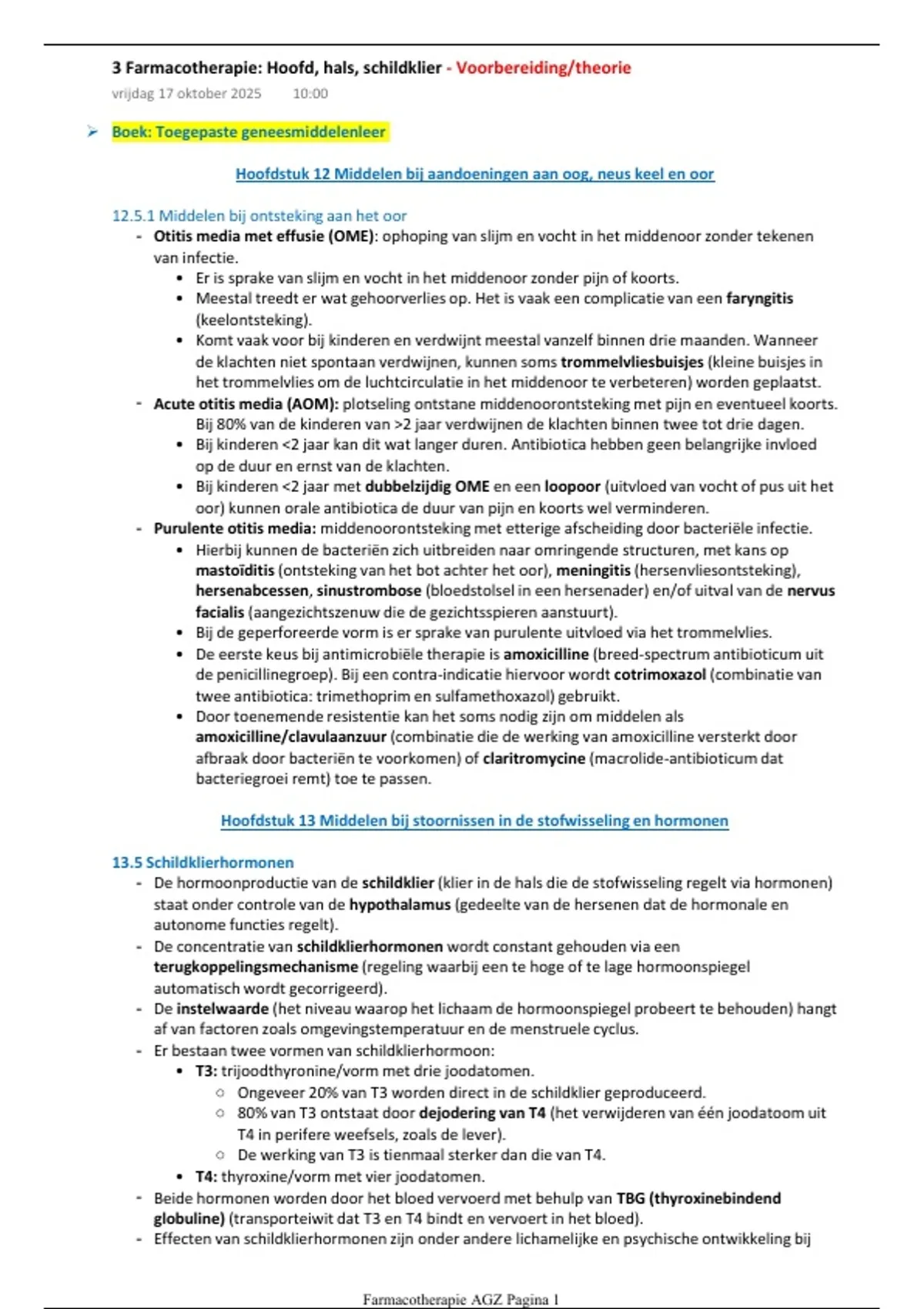 3 Farmacotherapie: Hoofd, hals, schildklier - Voorbereiding/theorie