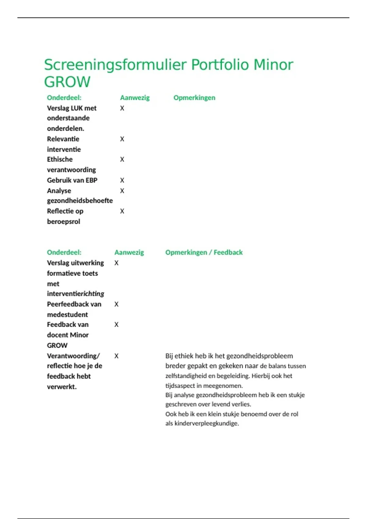 Peerfeedback van X