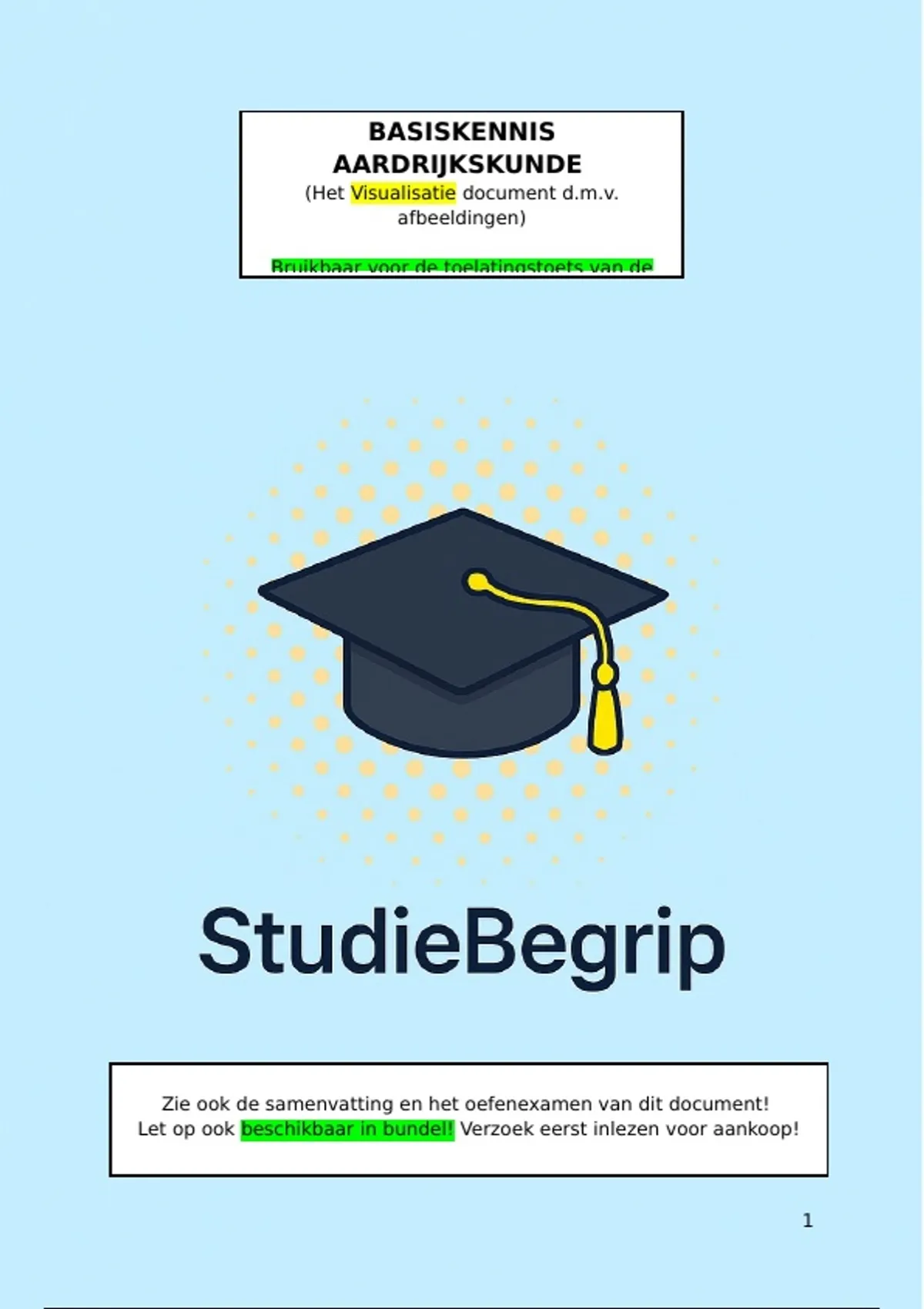 Bruikbaar voor de toelatingstoets van de